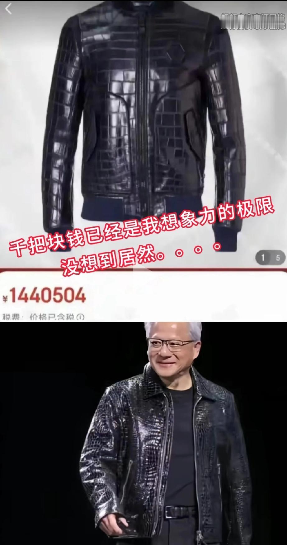 英伟达黄老板身上那件皮衣,我本以为千把块已是我想象的上限,没想到价格竟高达1440504元。会不会像第二张图那样,是从拼多多买的呢?哦,我想起来了,黄老板应该不会去和别人拼单的。 [泪奔][泪奔][赞]