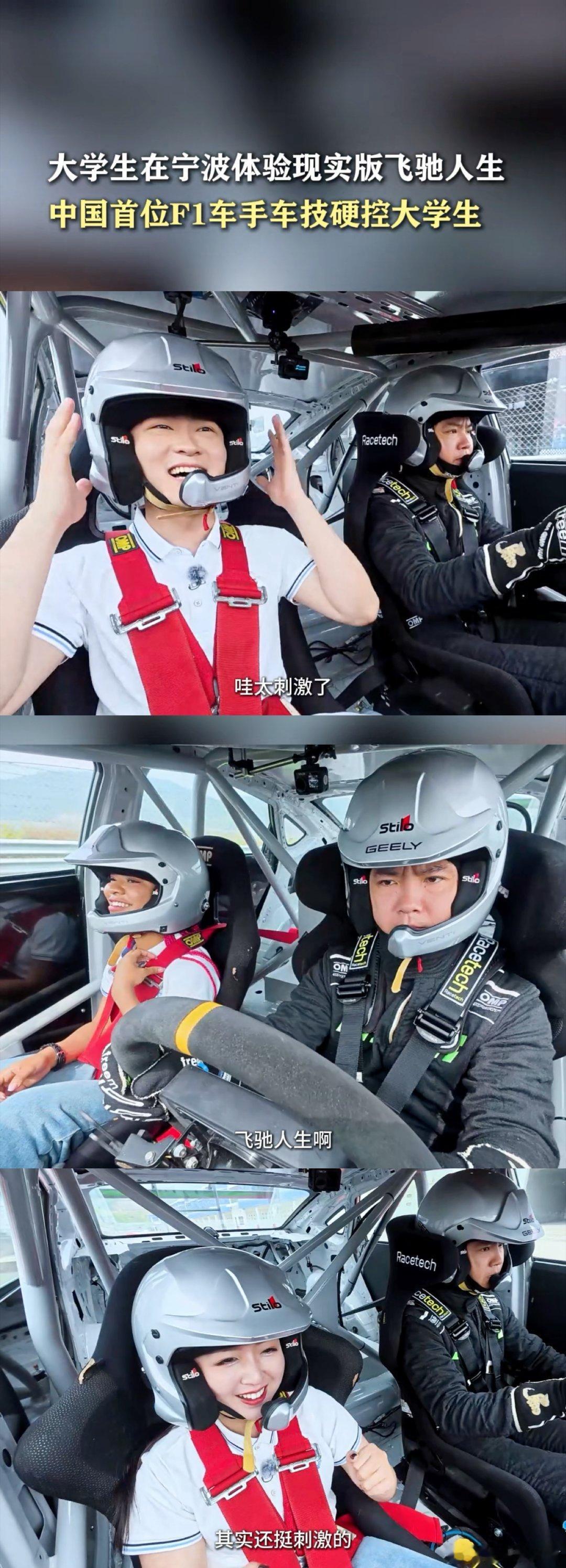大学生在宁波体验现实版飞驰人生中国首位F1车手车技硬控大学生 热血值直接拉满!宁波大学生解锁现实版飞驰人生,中国首位F1车手的车技硬控全场,看得人热血沸腾!