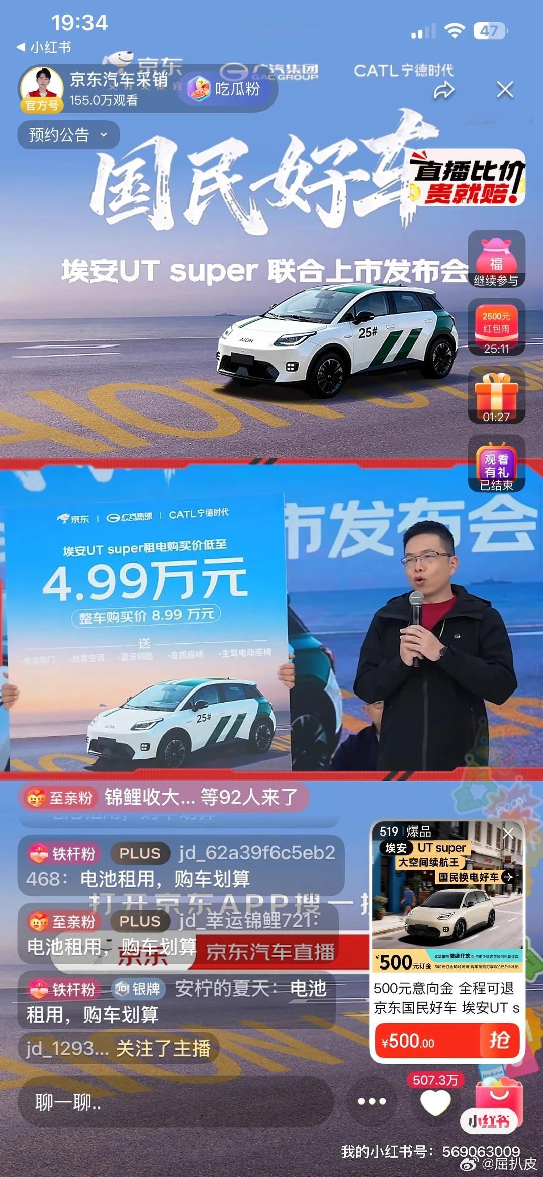 5万电车能做到这?价格:4.99万起(车身)尾款支付后:官方说2~4 周可以提车续航:CLTC 500km尺寸:轴距2750mm(A0 级车尺寸做到 A 级空间)功能:540°影像、倒车哨兵、华为云车机补贴:整车最高4000元补贴电池租用:限时399/月换电:宁德时代计划2025年建成1000座换电站,2026年2500座交付网络:京东+广汽联合做了“国民好车交付中心”,目前已经开始落地如果11月30日前下订但延迟到 2026年交付,广汽会补贴购置税