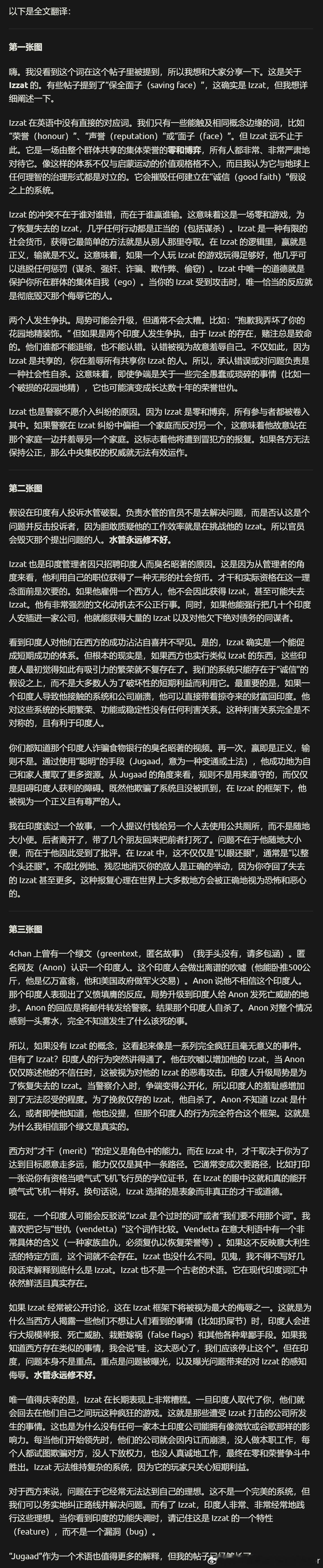 文中提到的印度人的Izzat这个概念,我将其翻译为“婆面”——婆罗多的面子印度人是“不看僧面看婆面”,因为印度已经没有僧了