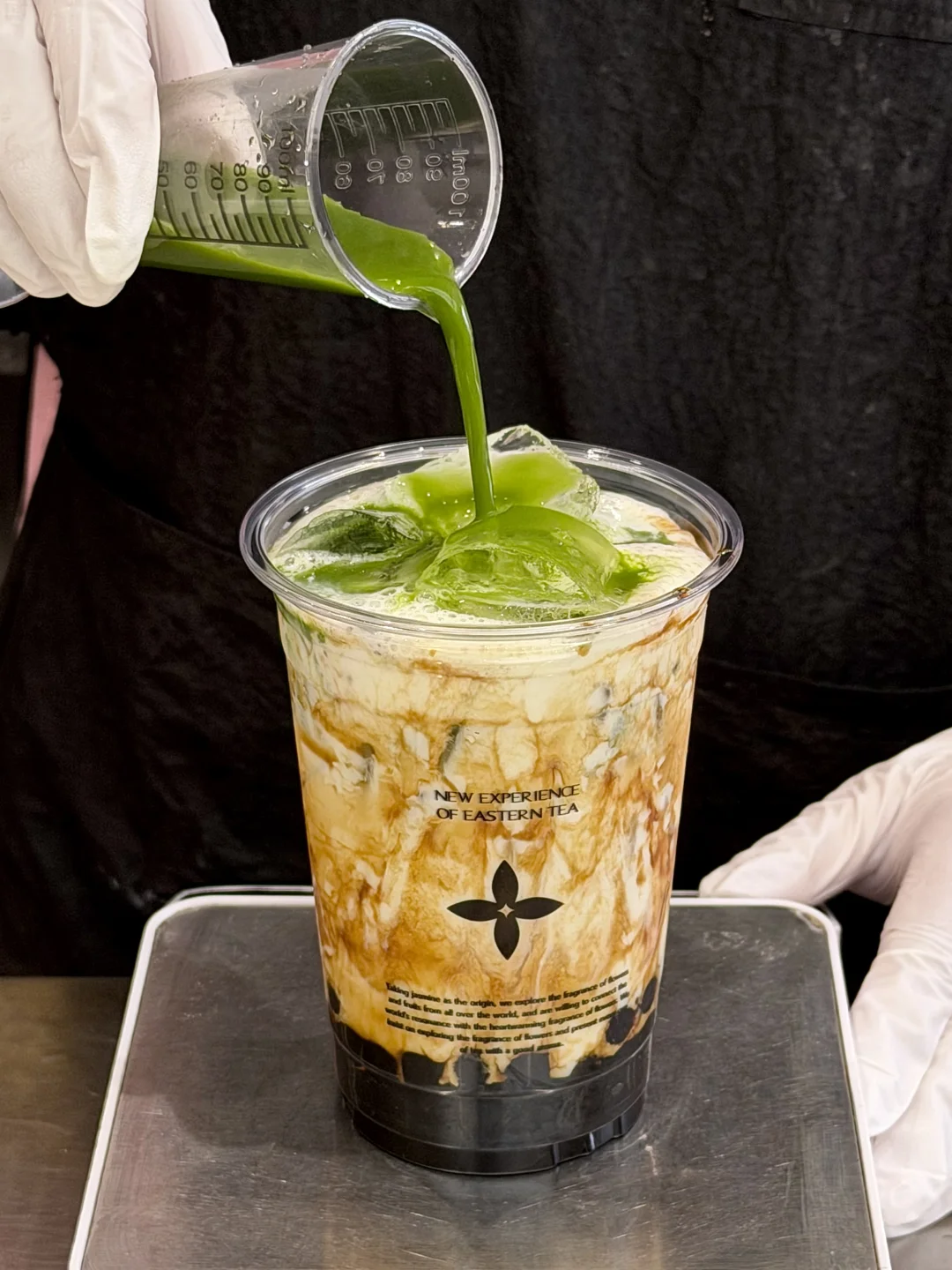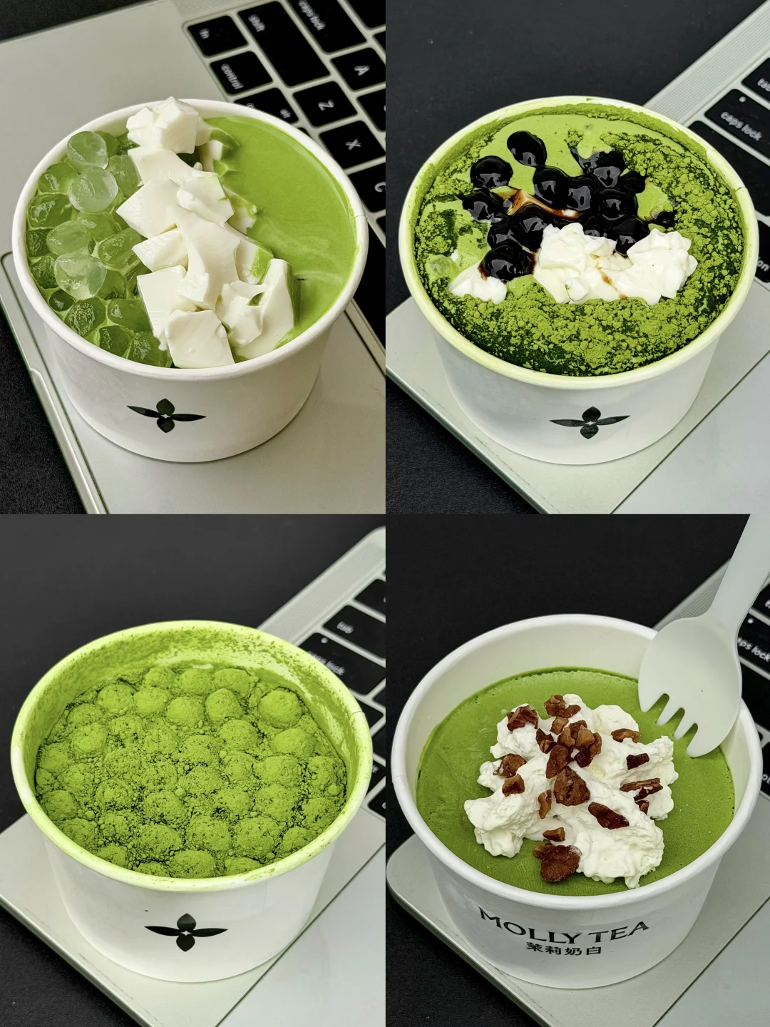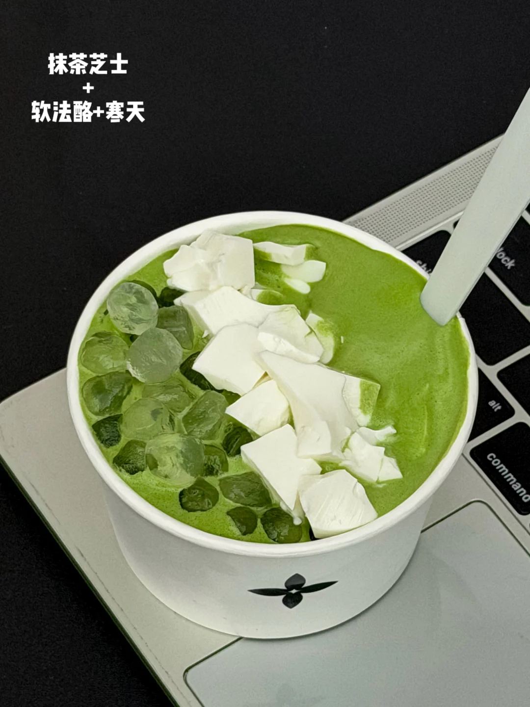 都去喝茉莉奶白新品🧋雪绒珍珠抹茶牛乳!“抹茶白兰”的姐妹款!! 喝之前搅拌一下,液体部分是抹茶+雪绒芝士厚牛乳+自研奶酪粒牛乳+兰香甘露茶底 喝起来咸甜的奶香中中带着抹茶的醇苦,不会觉得腻!!! 喜欢抹茶🍵的人会懂,总结了四种抹茶芝士小料吃法 1️⃣ 抹茶芝士➕软法酪➕寒天 2️⃣ 抹茶芝士➕软法酪➕黑糖珍珠(撒抹茶粉) 3️⃣ 抹茶芝士(自己冷冻)➕黑糖珍珠(撒抹茶粉) 4️⃣ 抹茶芝士(自己冷冻)➕茉莉忌廉(撒碧根果)