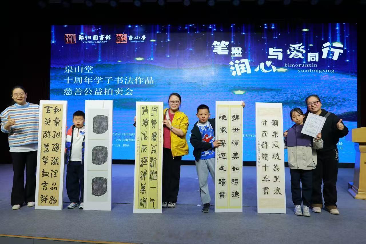 宁波这场爱心拍卖的背后是10年公益路 11月23日下午,泉山堂十周年学子书法作品慈善公益拍卖会在鄞州区图书馆举行,50余件拍品均来自师生书法巡展作品,拍得善款1万余元,捐赠给鄞州区星梦社会工作服务中心,用于自闭症儿童艺术疗愈。泉山堂深耕书法美育,坚守十年公益路,长期开展春节送福、写春联等公益活动,2015至2019年连续举办五届“迎新赠书会”,为青少年送文学书籍与书法相关读物。2019年结对帮扶湖南溆浦困难学生,2021年举办书画慈善义卖并成立“泉水叮咚基金”,获自闭症家庭支援中心相关证书,今年助残日联合电台开展关爱自闭症儿童活动。今年其师生书法巡展走进多地,传承宁波文脉与传统美学,以笔墨为桥传递文化温度与公益善意。暖心中国暖心宁波
