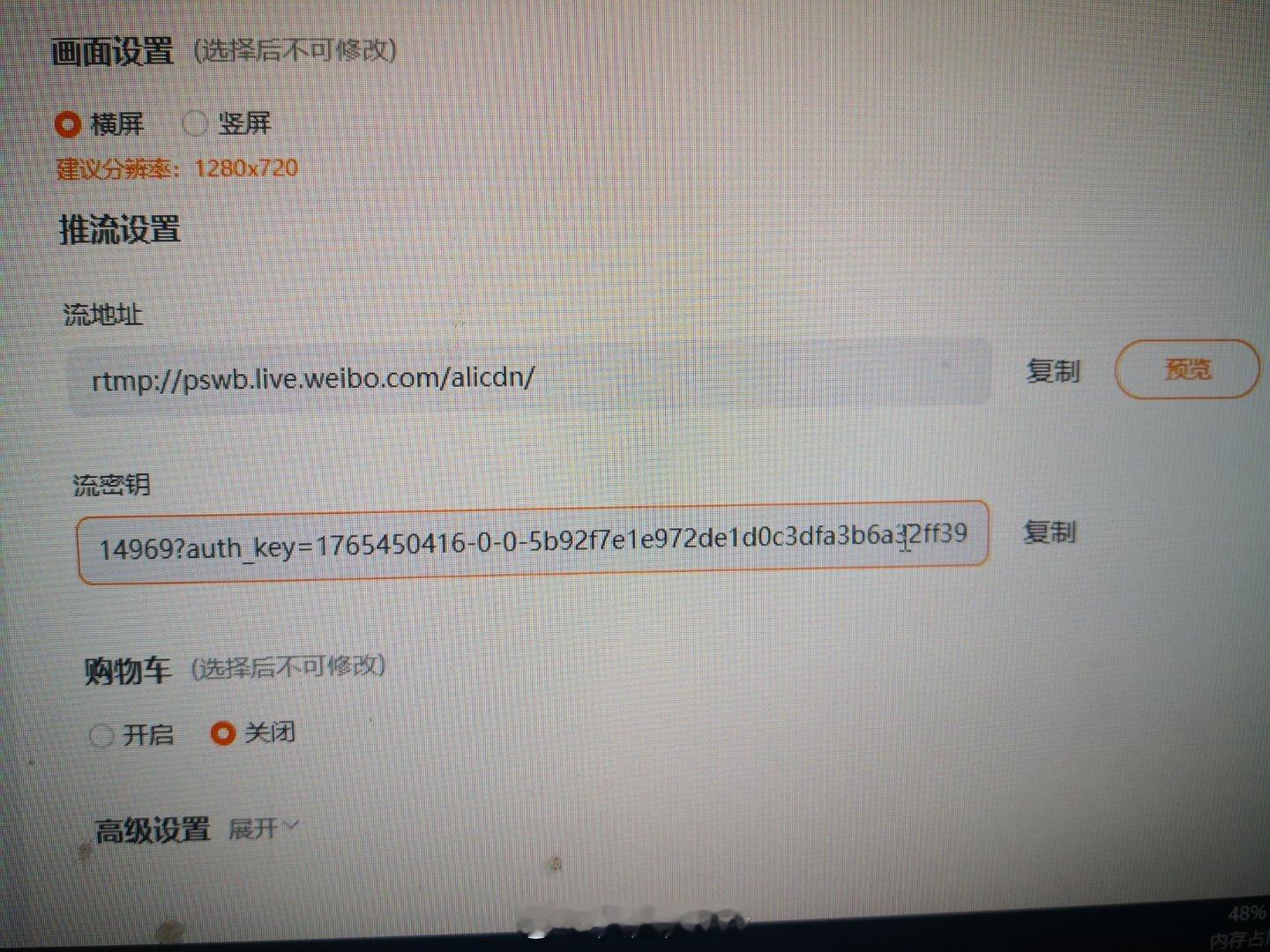 有没有人懂直播设置的?密钥那栏点进去黏贴不了,也不能删除。