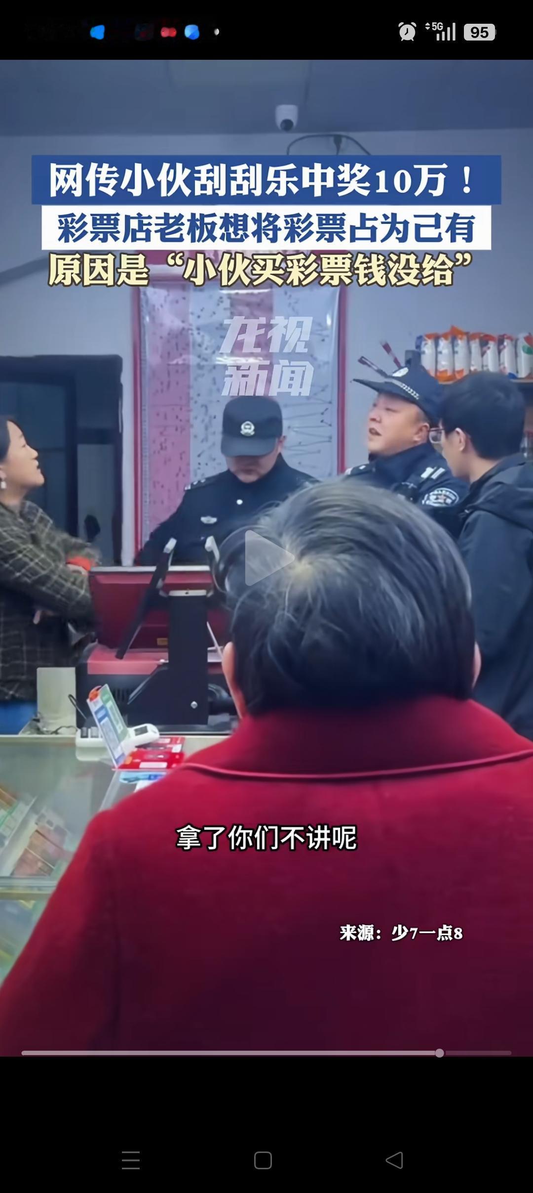 “这不就是耍无赖吗?”,浙江金华,一小伙刮刮乐中奖100000块,老板却以未付款为由拒绝兑奖。还硬气的说:他每次来都是自己拿,也不问我们。 连帽子叔叔也看不下去了,说:既然都是老客户,那你为什么不让他先付款就刮彩票。你没说就等于是默认了,他是正常购买的彩票,理应归还。 这件事其实就是老板耍小聪明,没付款刮彩票中奖了,就说是他的。没中奖就让你掏彩票钱,哪里有这么好的事? 这样的彩票店估计也没人会去了,一点基本的诚信都没有,对老客户都这么做,心寒。。