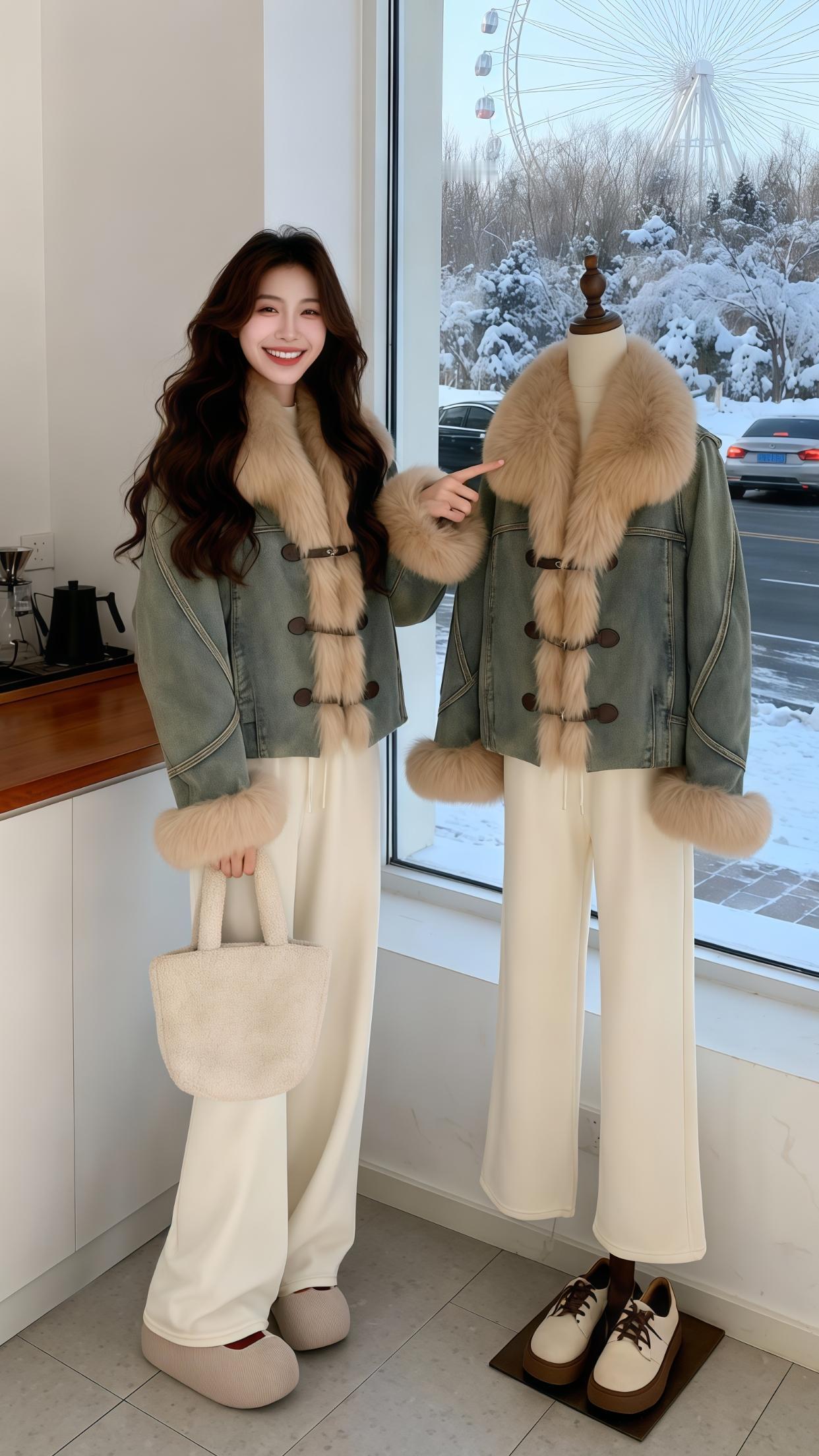 都市夜色中的时尚少女,温暖冬日穿搭指南🌟