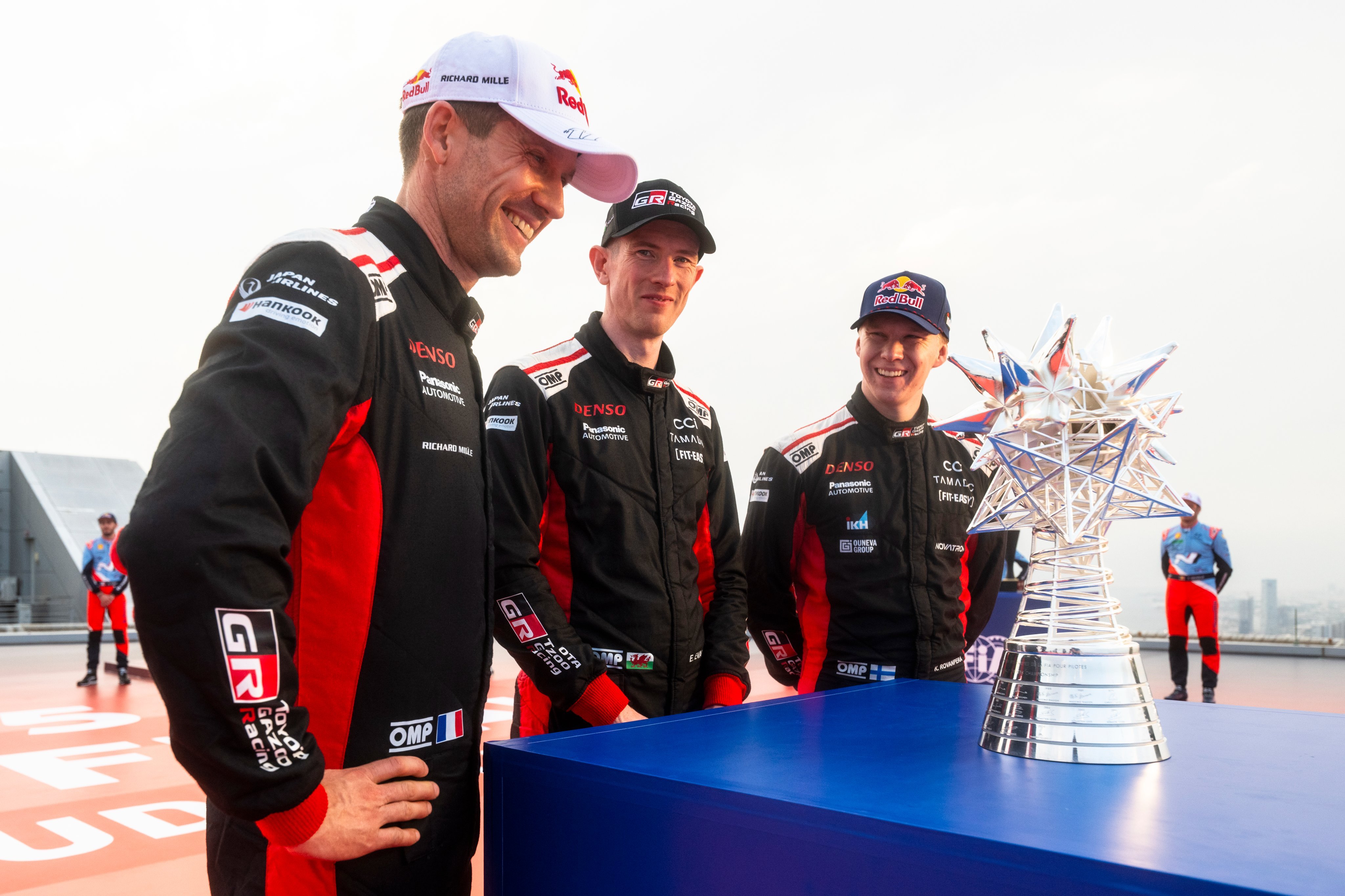 三位车手,一个奖杯,有趣的镜头语言~📸 TGR WRTWRC世界拉力锦标赛丰田赛车