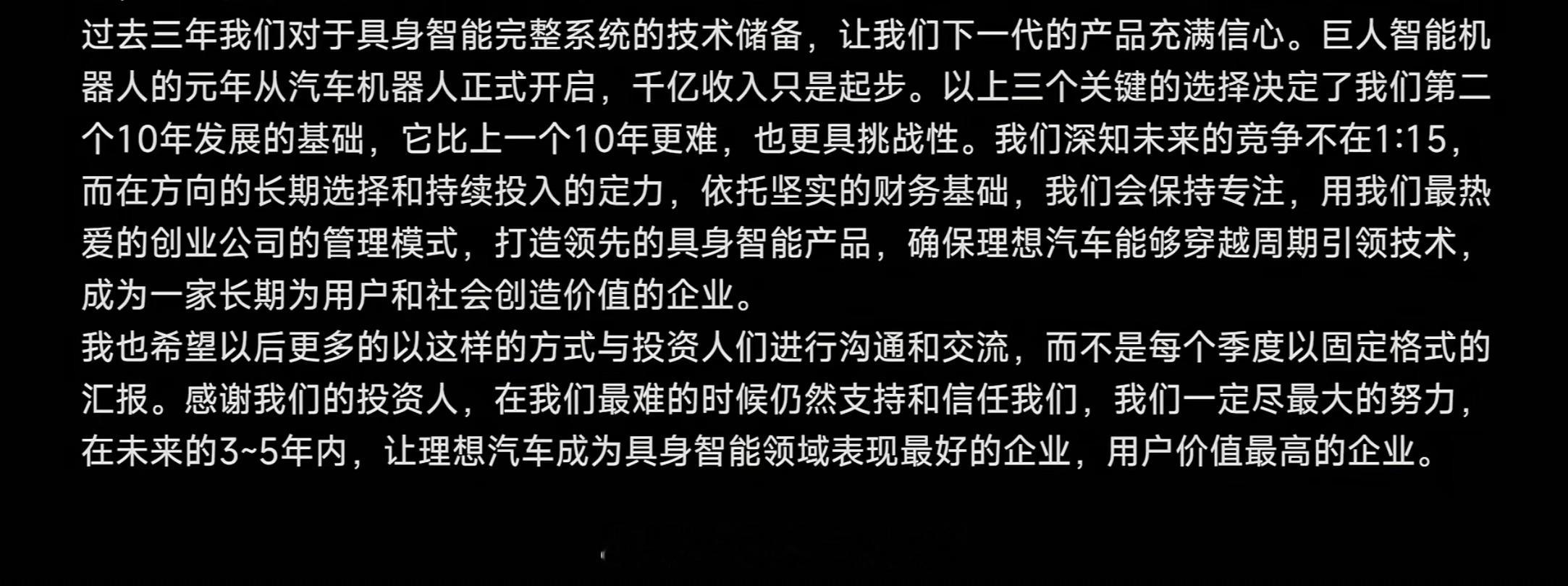 理想汽车发布25年Q3财报厂长刚刚在电话会议上讲的,值得期待!!