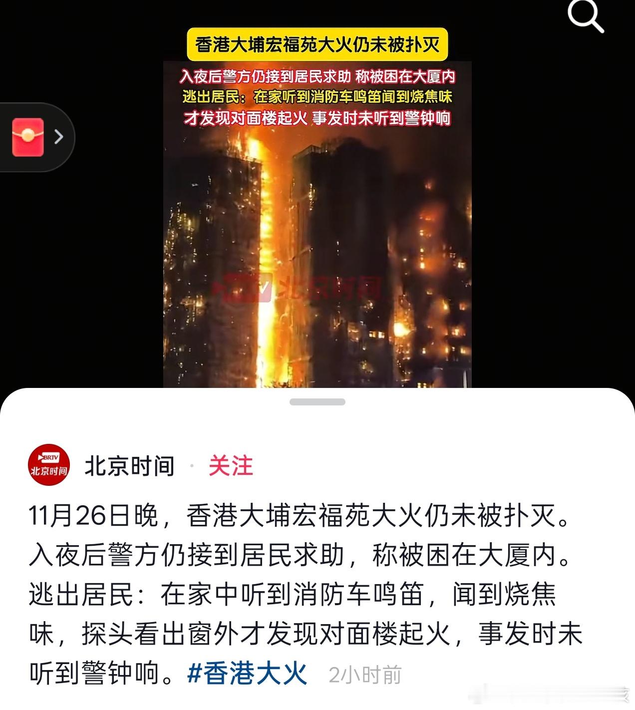 香港火灾下午烧到晚上,刚看直播火势还是很大太可怕了,愿大家都好!