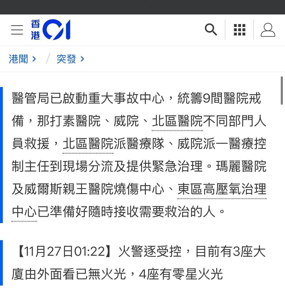 🔻27日凌晨,香港特区行政长官李家超表示,现场火情已经基本受控。李家超说,火灾造成至少36人遇难,279人失联。🔻via hk01香港已出动超1000人灭火香港启动应急救援机制热点现场