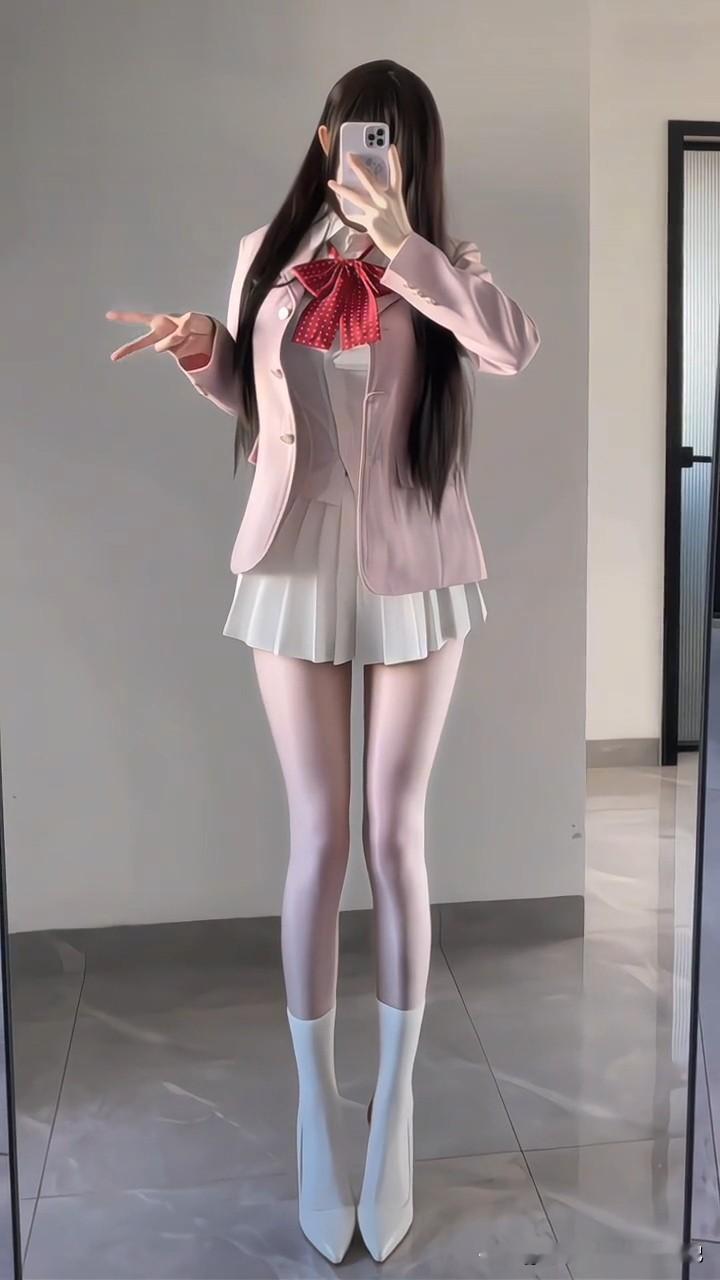 这套粉白学院风完美揉合了“甜辣元气感”——浅粉西装裹藏着软乎乎的温柔,红波点领结彰显着跳脱的活泼,白百褶裙摇曳着少女心,浅粉丝袜与白靴更增添了几分甜酷气场。整体宛如“揣着糖果的元气学姐”,走动间裙摆带着细碎的灵动。无论是漫展还是约会穿着,都甜而不腻,将可爱与精致隐匿于细节之中学院风穿搭 甜辣风 粉系少女感穿搭 甜美学院风衬衫