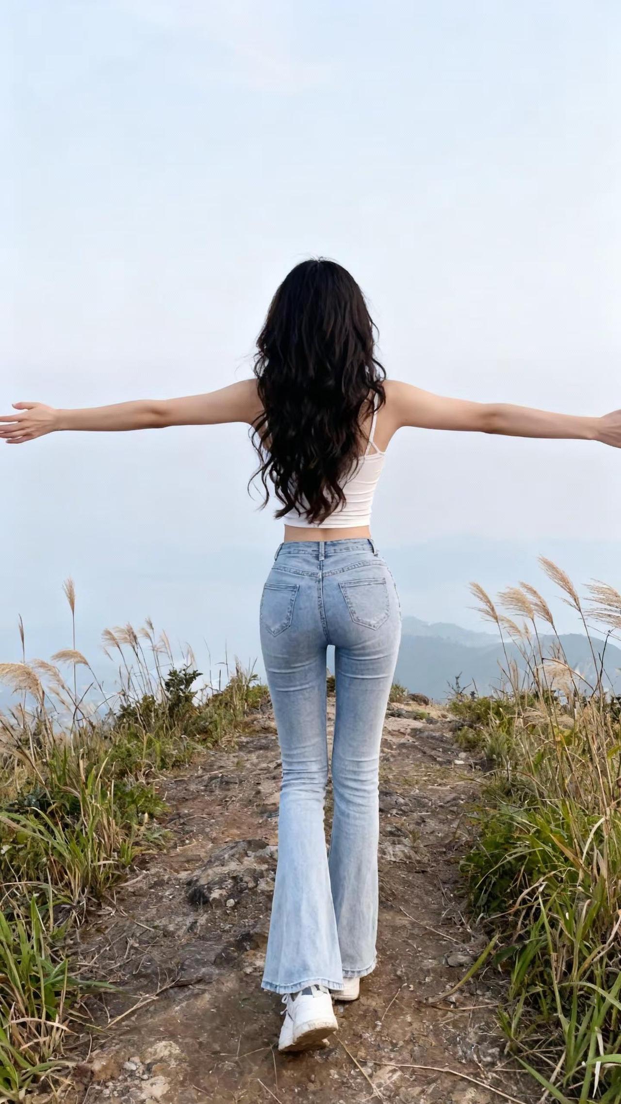 我会一直等 等风等你等阳光牛仔裤穿搭