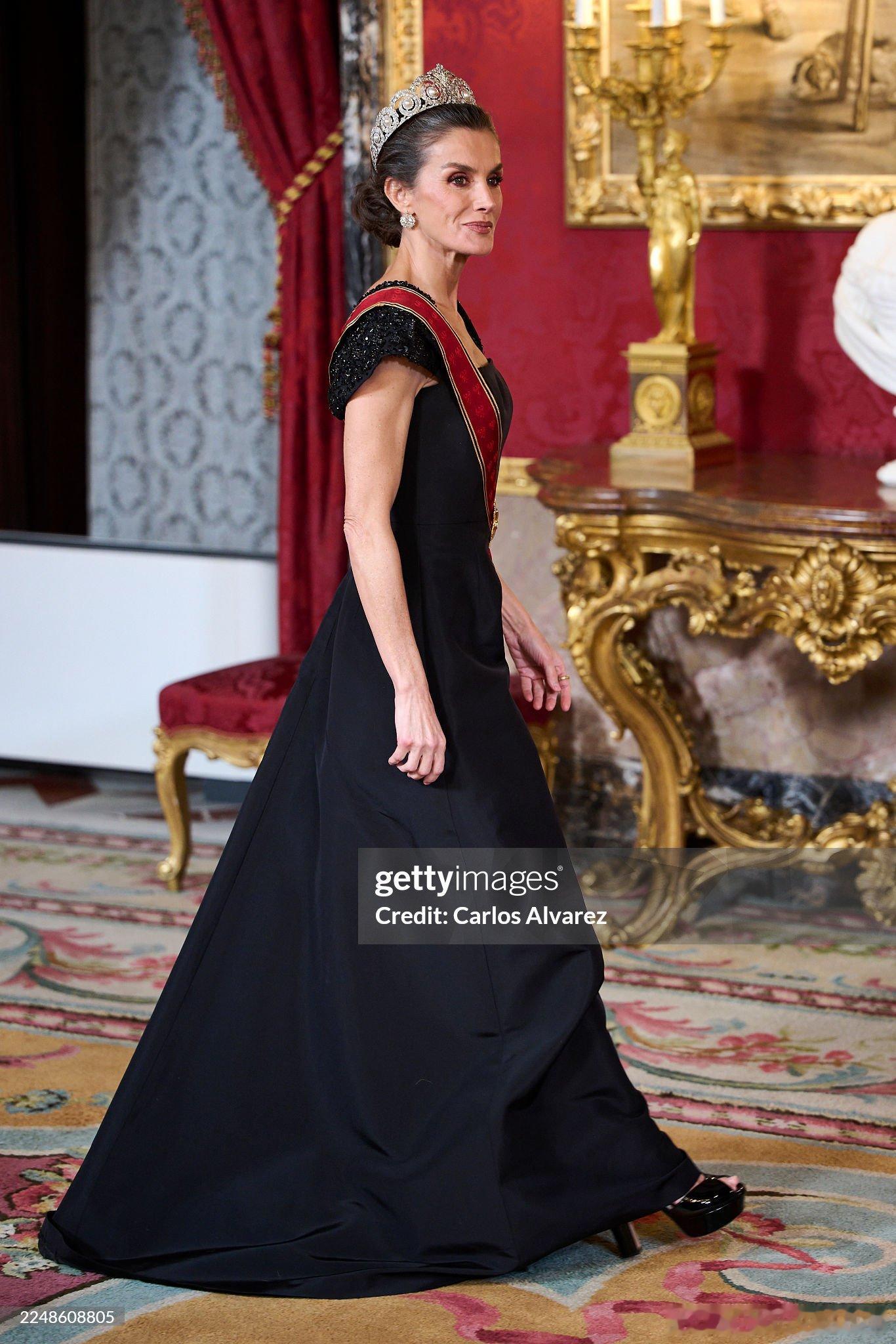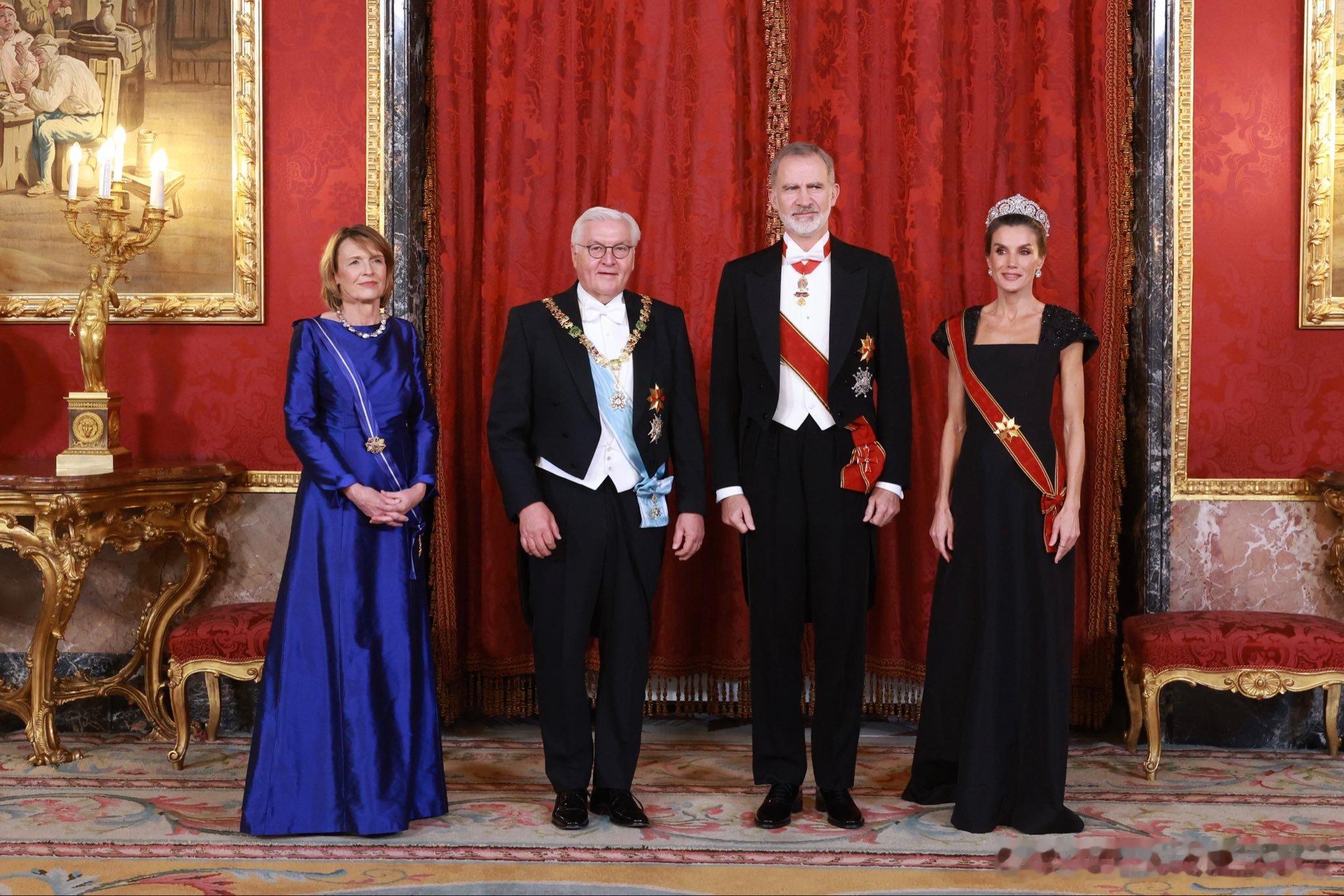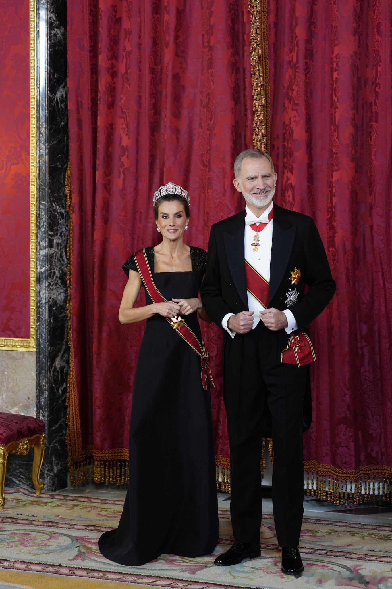 新闻 2025.11.26 德国国事访问西班牙Day 1,晚宴补图,小莱的黑色亮片长礼服来自Caroliba Herrera,黑瘦的极致就是啥也撑不住了哎。