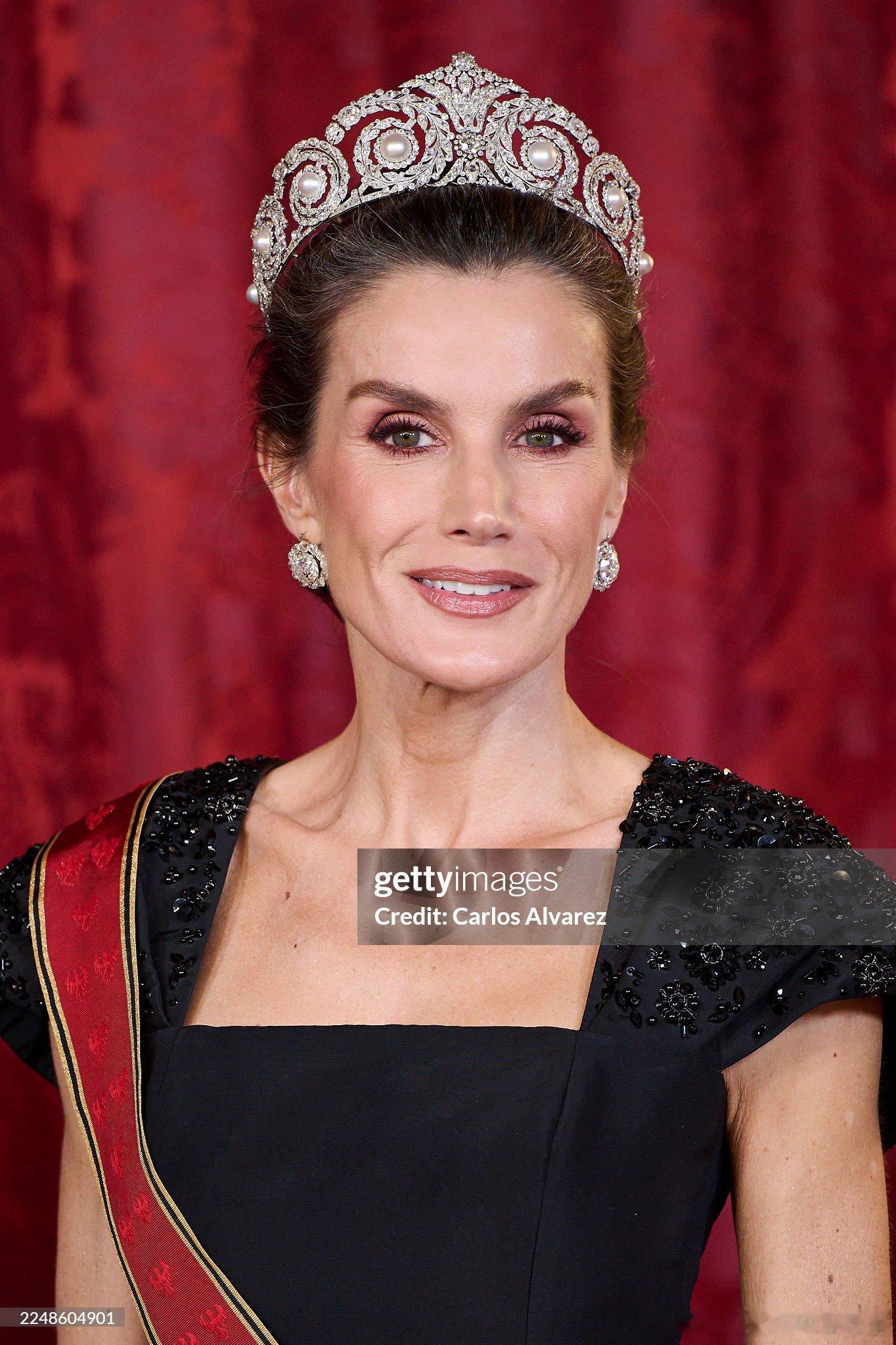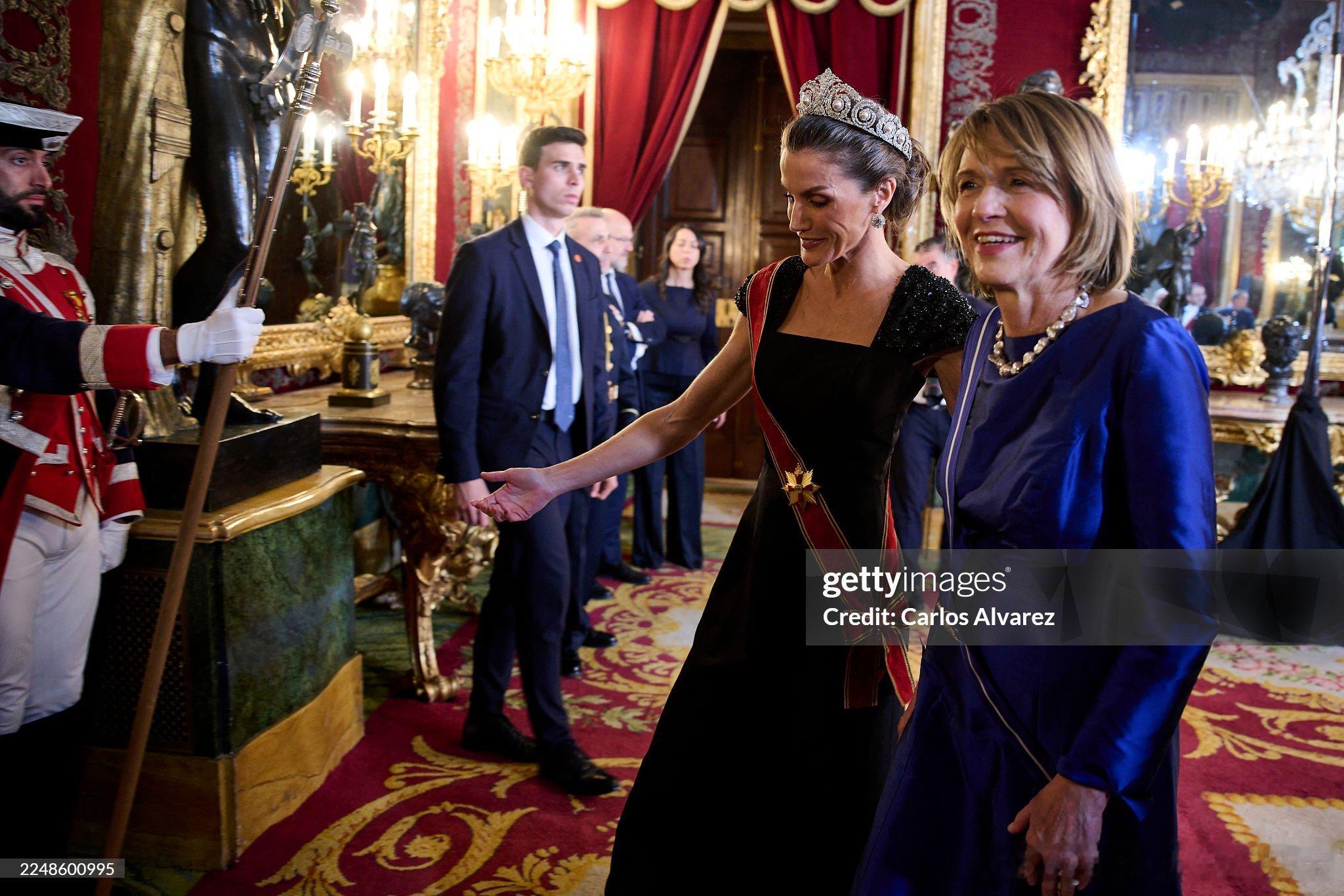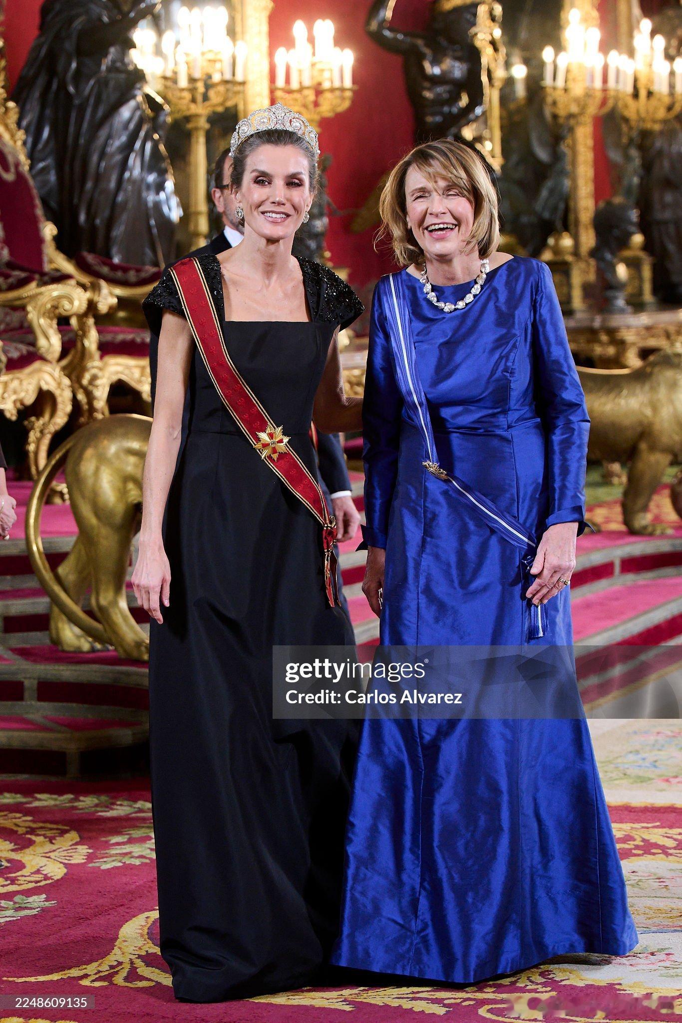 新闻 2025.11.26 德国国事访问西班牙Day 1,晚宴补图,小莱的黑色亮片长礼服来自Caroliba Herrera,黑瘦的极致就是啥也撑不住了哎。