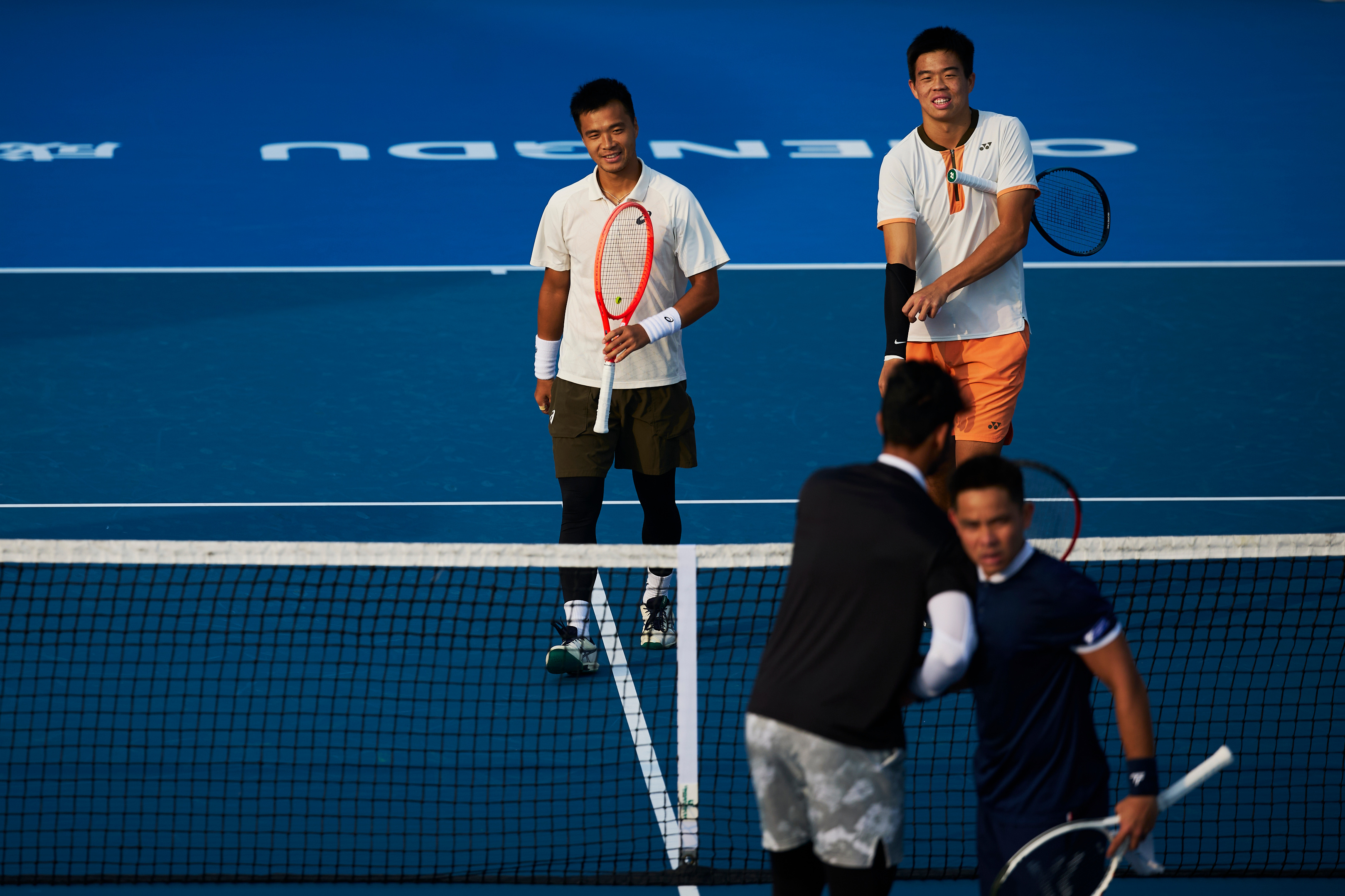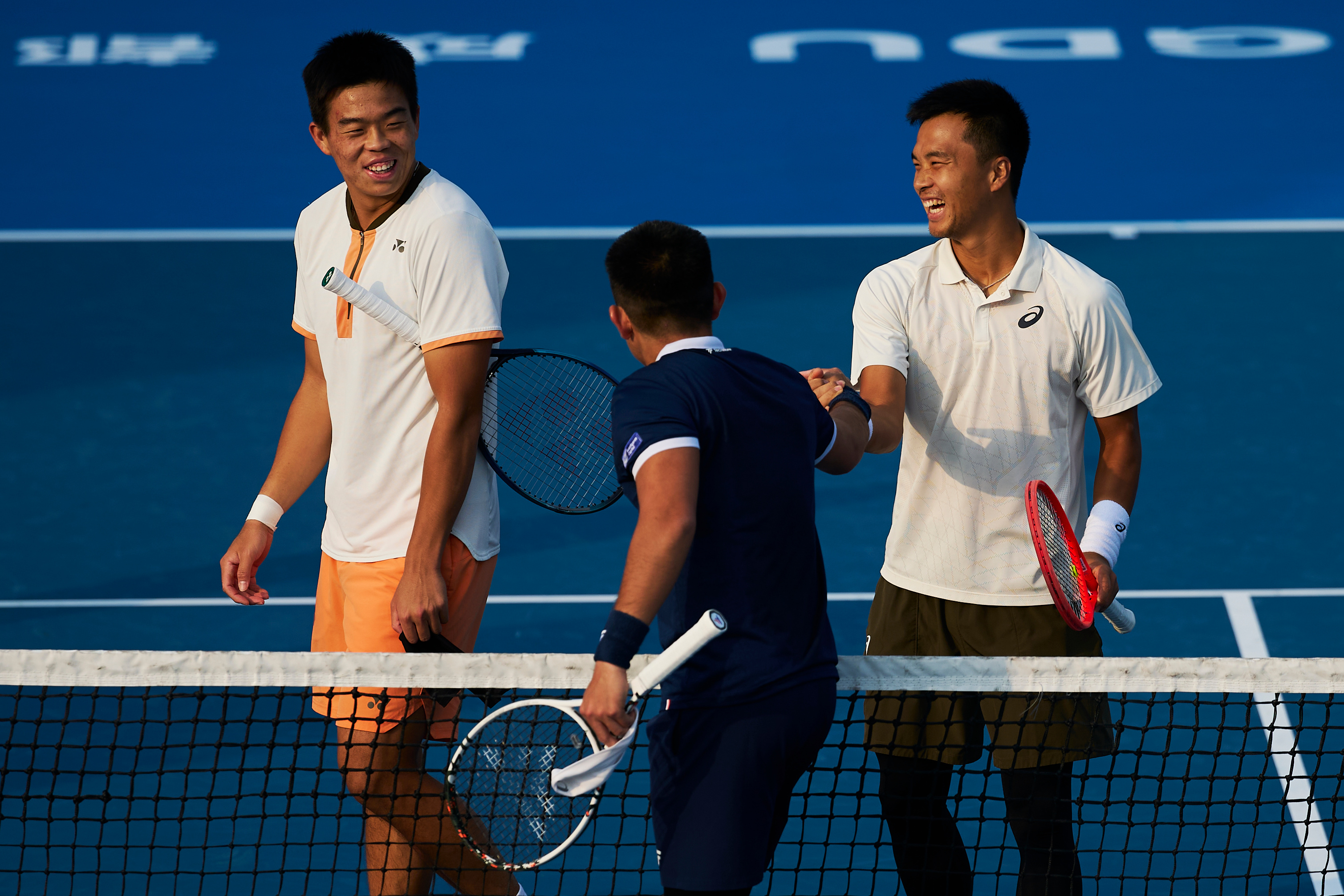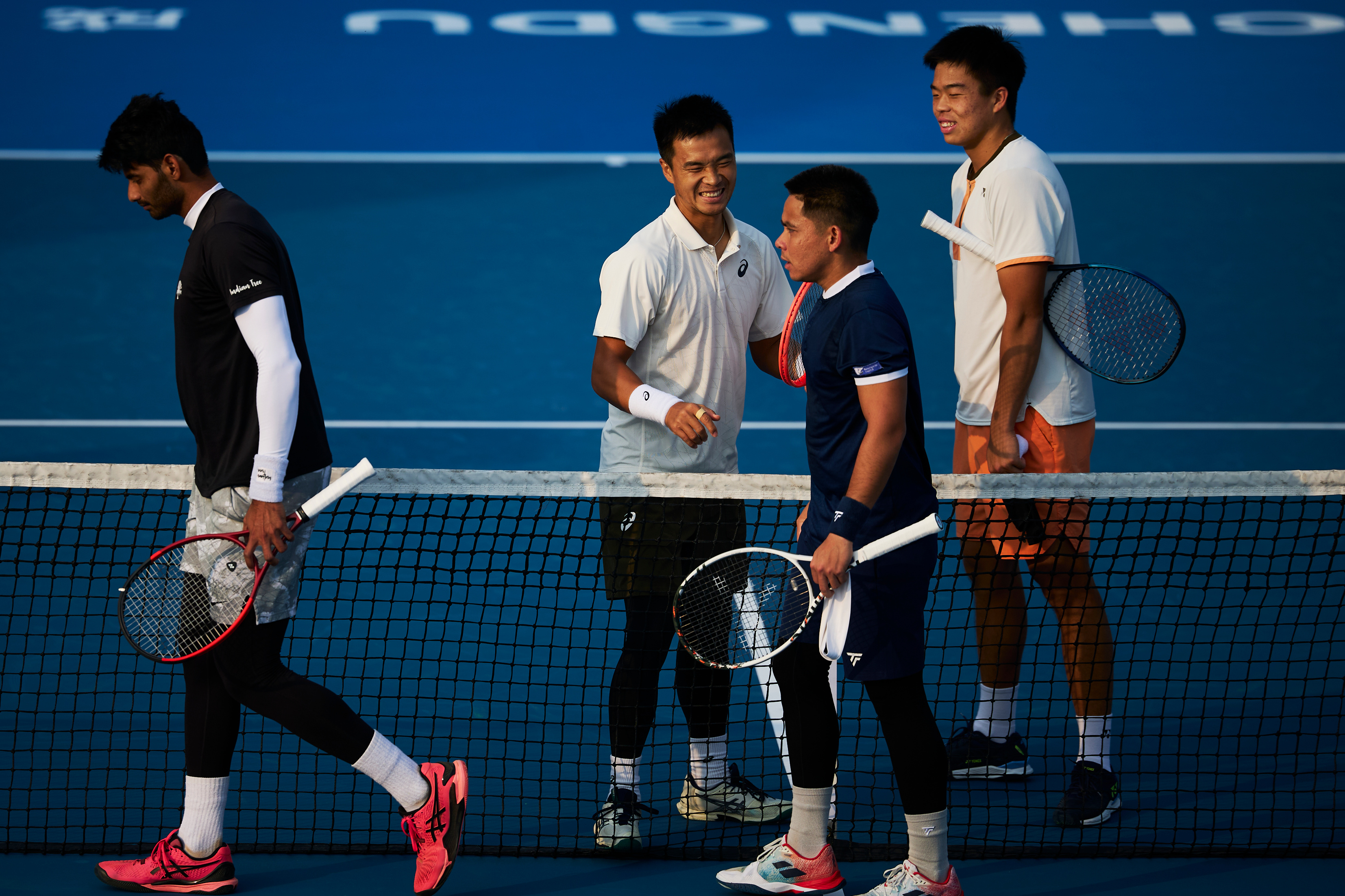 双打比赛也有戏!赛后孙发京曾姚杰网前和对手互动很有趣!2025年11月26日,2026澳大利亚网球公开赛亚太区外卡赛男双1/4决赛中,中国组合孙发京/曾姚杰以4-6/2-6负于艾萨罗/普纳查,无缘晋级半决赛。摄影:记者 李建艺网球talking大会澳网2026