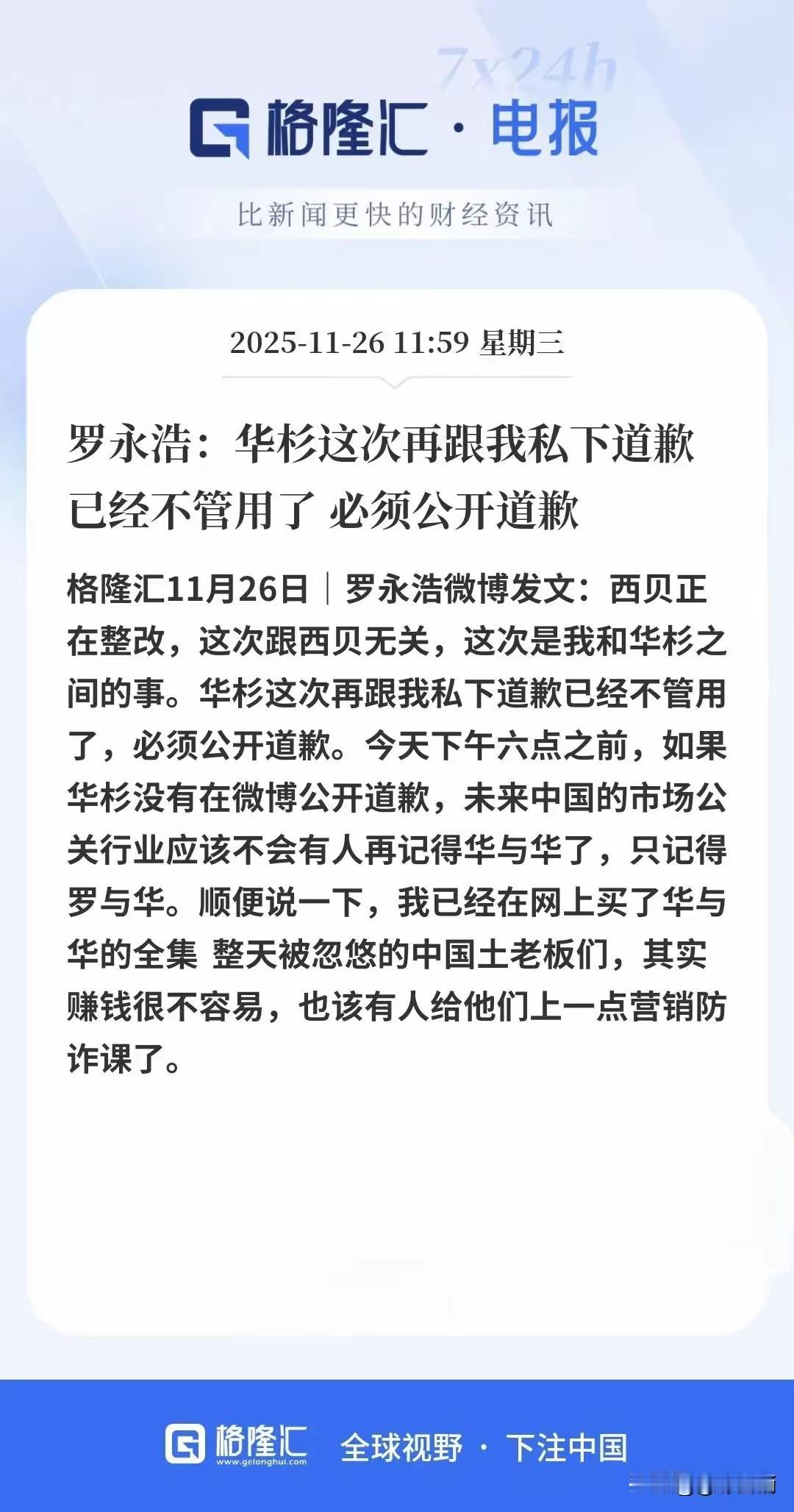 罗永浩是被华与华兄弟气死炸了。 他准备给民企老板们上营销防诈课了,毕竟民企老板赚钱太不容易了。