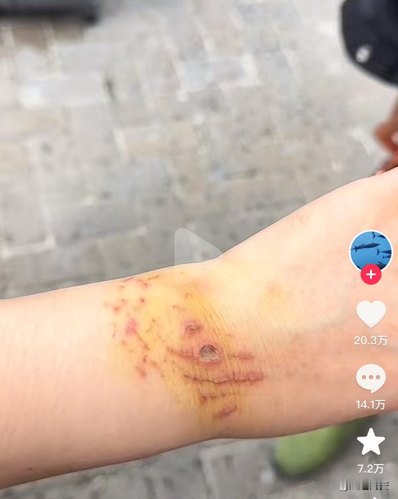 太可怕了!上海一女子到马来西亚潜水,不料被鲨鱼咬了,当朋友都好心告诉她,被咬的地方已经感染了,有可能会被截肢,建议她尽快到医院去看看,结果她却不以为然。 刚刚刷到一个视频,一女子潜水被鲨鱼咬了,手腕处红肿一大片,周围的朋友都在提醒她,尽快到医院救治,别感染海洋创伤弧菌导致截肢。 结果该女子不仅不当回事,还以为大家在吓唬她,甚至发了多条视频来证明自己根本没事。 看了她的其他视频才知道,她根本就不会游泳,而且潜水当天还来了生理期。为了能够出片,她多次潜到鱼群周围。 而且最关键的是,她带了一个反光的手链,不小心触发了鲨鱼投喂的信号,让鲨鱼误以为她手里有食物,才不小心把她咬了。 在她被咬后,向导第一时间让她上来包扎,没想到该女子还不情愿,不理解向导为什么非要她上来。 上岸后,向导没有给她消毒,也没有给她用清水洗,直接用纱布简单包扎了一下,告知她不能在下水了。 为了能出片,该女子没有听劝,依然下水拍照。 虽然她晚上去了当地的医院做了处理,但是好心的朋友依然劝她尽快回国到医院再看看,没想到女子确实那个态度,真是buff叠满了。 这女子真是把“无知者无畏”展现得淋漓尽致!不会游泳还多次潜到鱼群旁,被鲨鱼咬后仍不当回事,不听劝继续下水。受伤后处理也不规范,也不重视朋友建议,如此漠视风险,真不知该说她大胆还是糊涂。