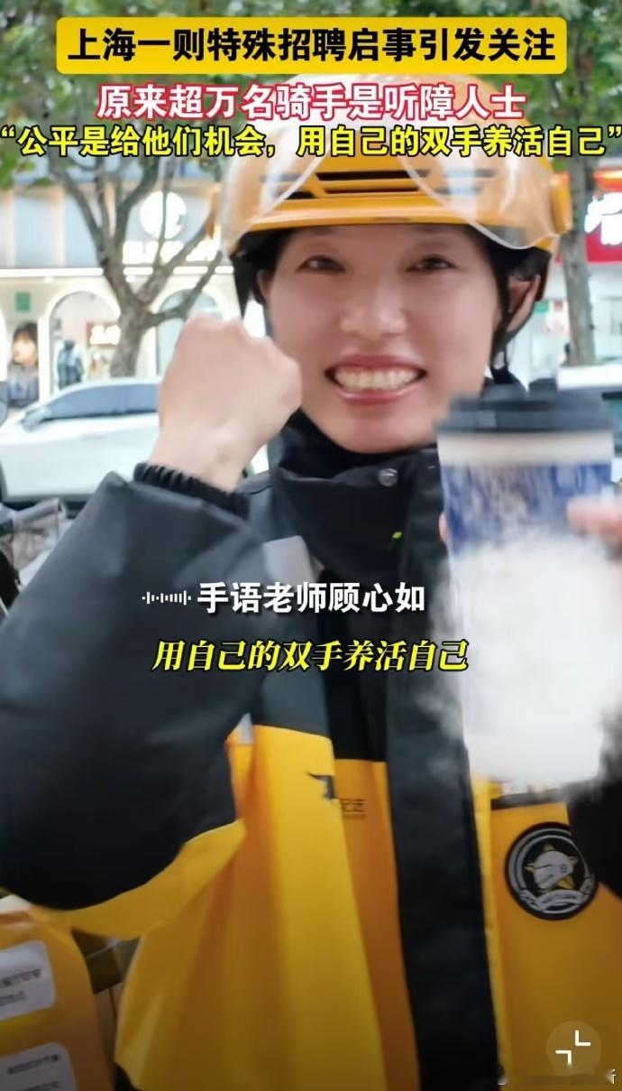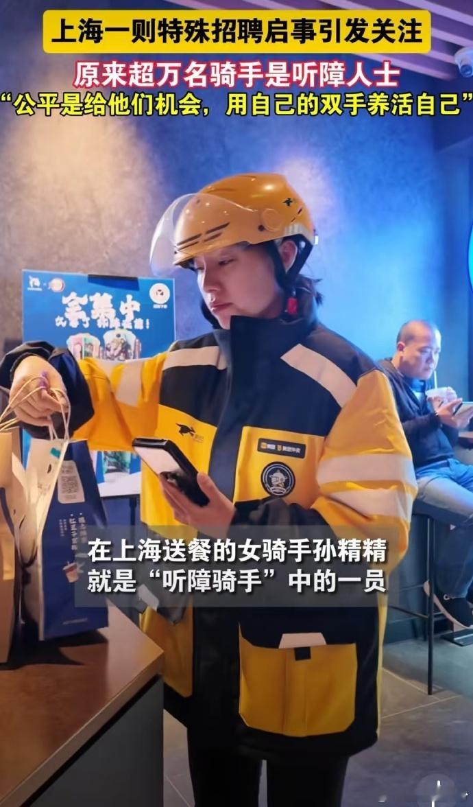 原来超万名骑手是听障人士 刷到这个新闻太戳心了!我国超万名听障骑手在默默打拼,上海女骑手孙精精从月薪3千到1万4,用努力改写生活,太励志~