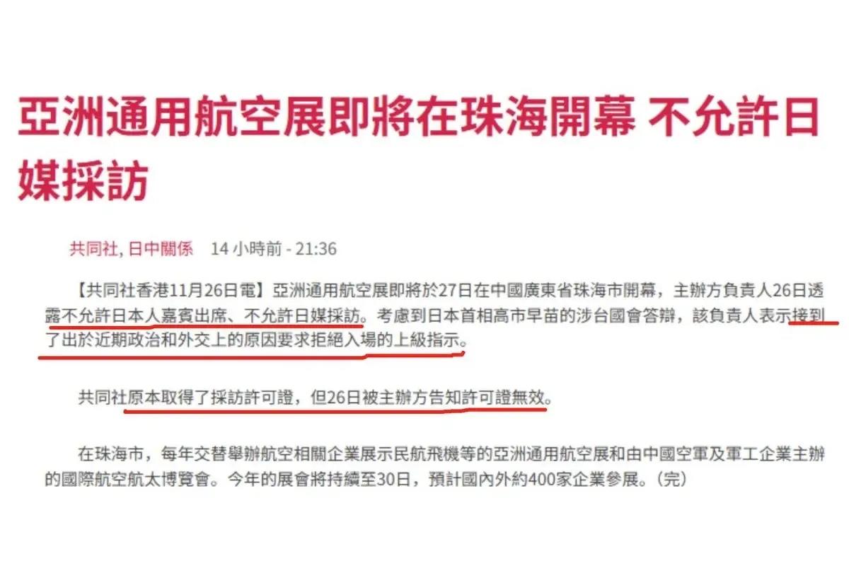大快人心,日本人不得入内! 据日本共同社报道,日本人将无缘参加即将在珠海开幕的2025年亚洲通用航空展。报道称,共同社的记者此前已经获得了采访许可证,但日前被主办方告知,他们的许可证已经被无效化处理,不能进入亚洲通航展。 不仅他们,所有日本嘉宾和媒体,一律不得入场。理由?主办方只说了四个字:“上级指示”。 这事要放在十年前,可能很多人会说:“不至于吧,不就是个展会?”可现在,越来越多的人第一反应是:“哦,那正常。” 为什么?因为大家看明白了,这不是一场简单的展会准入问题,而是一次清晰的规则重申:中国,开始按自己的逻辑办事了。 一张被收回的门票,背后是底线的倒退 别小看这张门票。它代表的是一种资格,一种被接纳的身份。过去很长一段时间,国际大型展会的“入场券”,往往是西方国家掌握解释权。你能不能进,取决于他们认不认你。 可这一次,角色变了。中国成了规则的制定者。你来不来,我说了算。 日本方面显然没料到这一手。共同社明明已经拿到许可,甚至安排好了报道计划,结果临门一脚被拦下。这种“突然性”,恰恰说明这不是临时起意,而是深思熟虑后的精准回应。 自高市早苗上台以来,日本在涉台问题上的言行越来越出格。从国会答辩中重提“台湾有事即日本有事”,到防卫白皮书强化西南方向军事部署,再到配合美方在南海搞所谓“航行自由”,桩桩件件都在试探中国的底线。 中国没在外交场合大吵大闹,也没发长篇声明,而是用一次展会准入调整,直接告诉对方:你踩线了,那就别怪我不给你平台。 这就像打牌,以前你出张牌,我忍着;现在我告诉你,这局我不陪你打了。你爱看不看,爱来不来。 民意不是情绪,是长期被触碰后的清醒 有人说,这是不是太强硬了?会不会伤及民间交流? 我觉得,这个问题本身就有点倒果为因。我们什么时候主动关闭过大门?什么时候拒绝过正常的技术交流?恰恰是对方,一边享受中国市场红利,一边在政治上配合围堵,这才让民间情绪逐渐转变。 举个例子。2023年,日本对华出口中,半导体设备和精密仪器占比超过35%。这些技术,很多都被用于中国高端制造。可与此同时,日本却在美国压力下,对中国实施半导体设备出口管制。 你让我花钱买你的产品,却不让我发展自己的技术;你想来我这儿看最新成果,却从不开放自己的核心研发。天下哪有这种好事? 再看航空领域。日本曾寄望于MRJ支线客机打破波音空客垄断,结果项目烂尾,赔掉万亿日元。而中国呢?C919已交付超10架,订单突破400,C909完成海上首飞,低空经济全面提速。亿航的无人驾驶飞行器甚至拿到了全球首个适航证。 在这种差距下,日本企业还想来珠海“观摩学习”?谁给他们的自信? 影响几何?说实话,对展会几乎没影响 担心禁令会影响展会效果的人,可能是高估了日本在通用航空领域的存在感。 本届航展,来自22个国家和地区的381家企业参展,德国、法国、加拿大展团规模扩大,美国Textron带来新款赛斯纳飞机实机参展。而日本企业,原本就只有两家报名,其中一家在禁令发布后直接撤展。 这说明什么?说明他们自己也没把这次展会当重点。你一个连像样eVTOL都没搞出来的国家,凭什么要求我们非得给你留位置? 带来的好处包括两点:一是让国内观众更专注看中国自己的技术突破,二是向所有参展国传递一个信号——在这个平台上,尊重是双向的。你想来,可以,但先照照镜子,看看自己做了什么。 这不是孤立事件,而是一种新常态的开始 我甚至觉得,珠海这一关,可能只是个开始。 未来,只要某些国家继续在台湾、钓鱼岛、历史问题上挑衅,类似的“不便利接待”恐怕不会少见。这不是报复,是反制机制的常态化。 你不能指望一边对中国指手画脚,一边还能轻松进入我们的核心展示平台。这个世界,终究是讲实力和规则的。 中国不再追求“你好我好大家好”的虚假和谐。我们愿意合作,但前提是平等与尊重。你不尊重我的主权,就别怪我不给你面子。 航展的围栏外,或许会有日本记者举着长焦镜头远远拍摄。而里面,中国的飞行器正一架接一架腾空而起,划出属于自己的航迹。 这画面,本身就是一种回答。 各位读者你们怎么看?欢迎在评论区讨论。