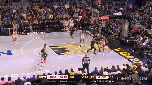 谢泼德今天高球商时刻。图1,一条龙反击,身右理查,身前波杰;微微一停,再起,一招破了俩人:停,起,晃倒理查重心;骗波杰转身去挡阿门,谢泼德直接上篮。图2,谢泼德横移到队友看得见的视角,接球,假投晃飞穆迪,突破,保罗式横跳投:一气呵成。火箭vs勇士谢泼德31分