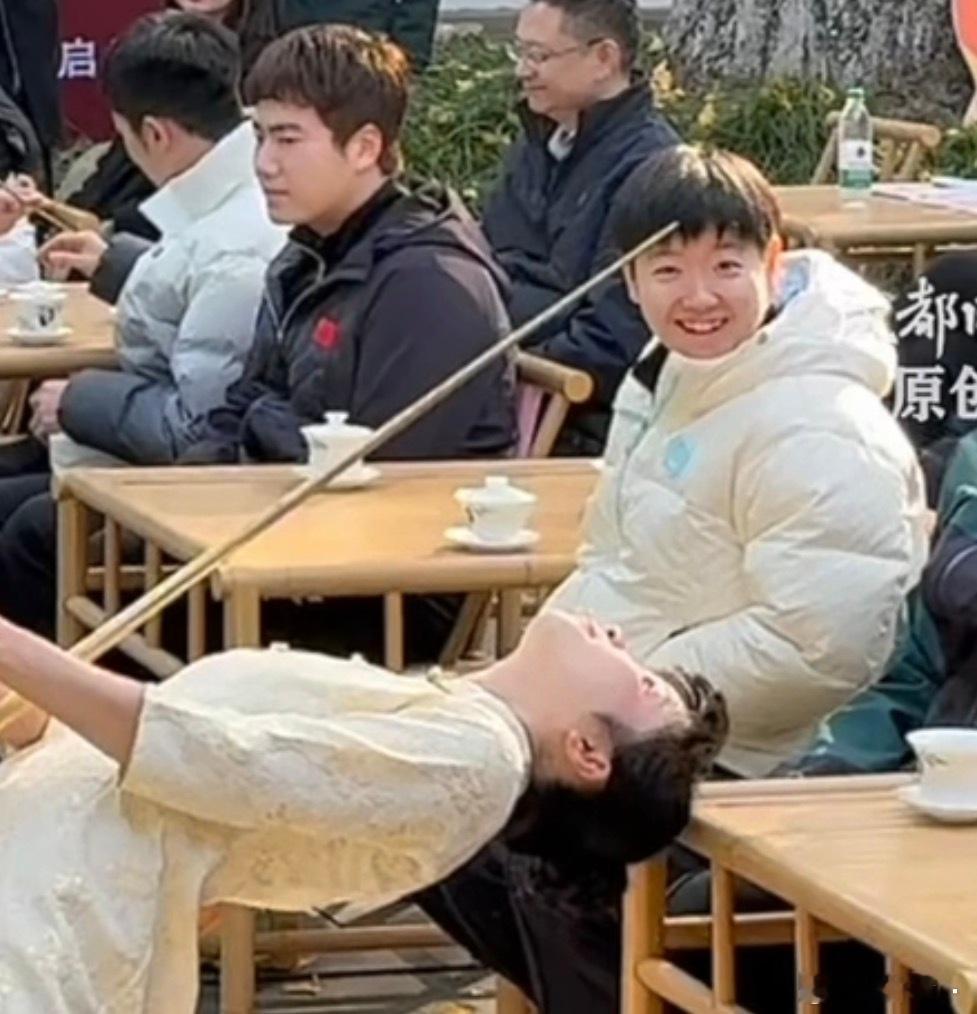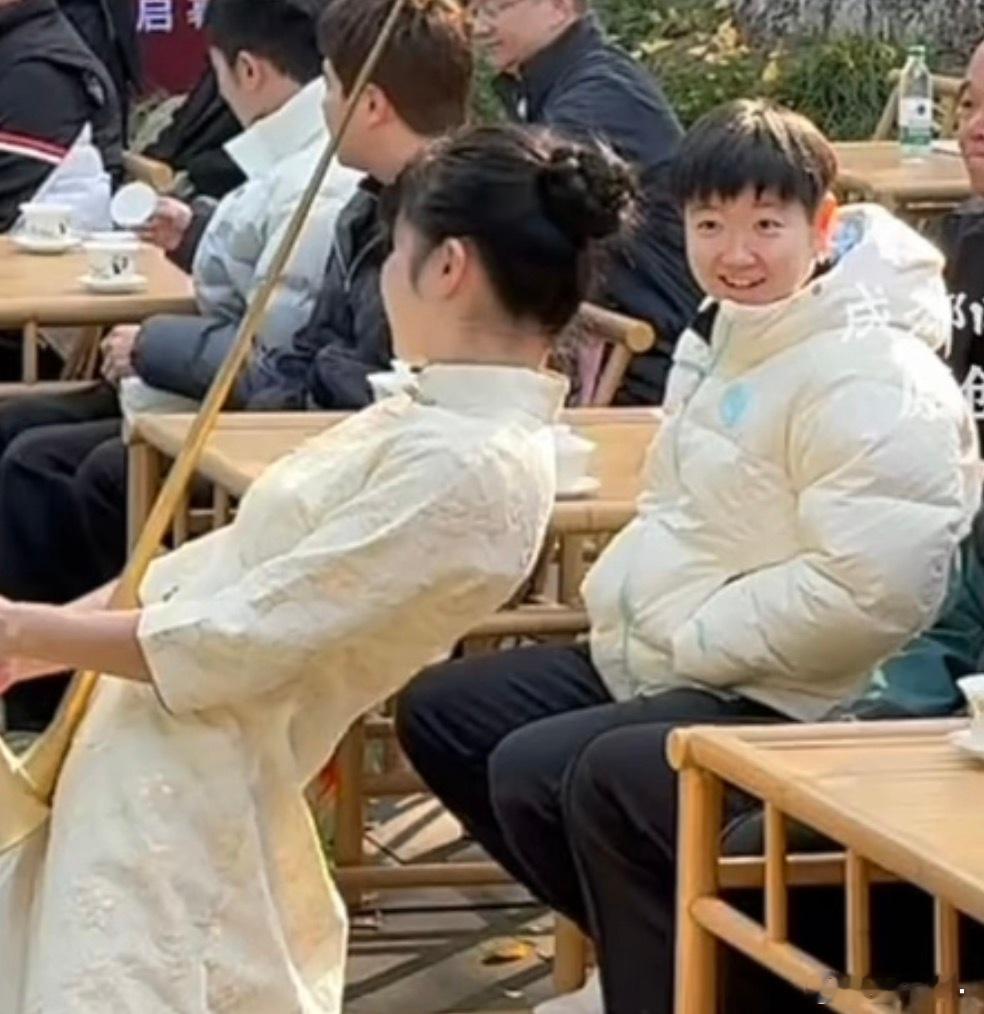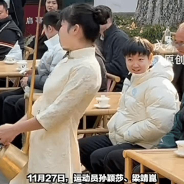 莎姐和高女士出去玩,应该是:妈妈你看妈妈你看类型的 孙颖莎看功夫茶笑得合不拢嘴