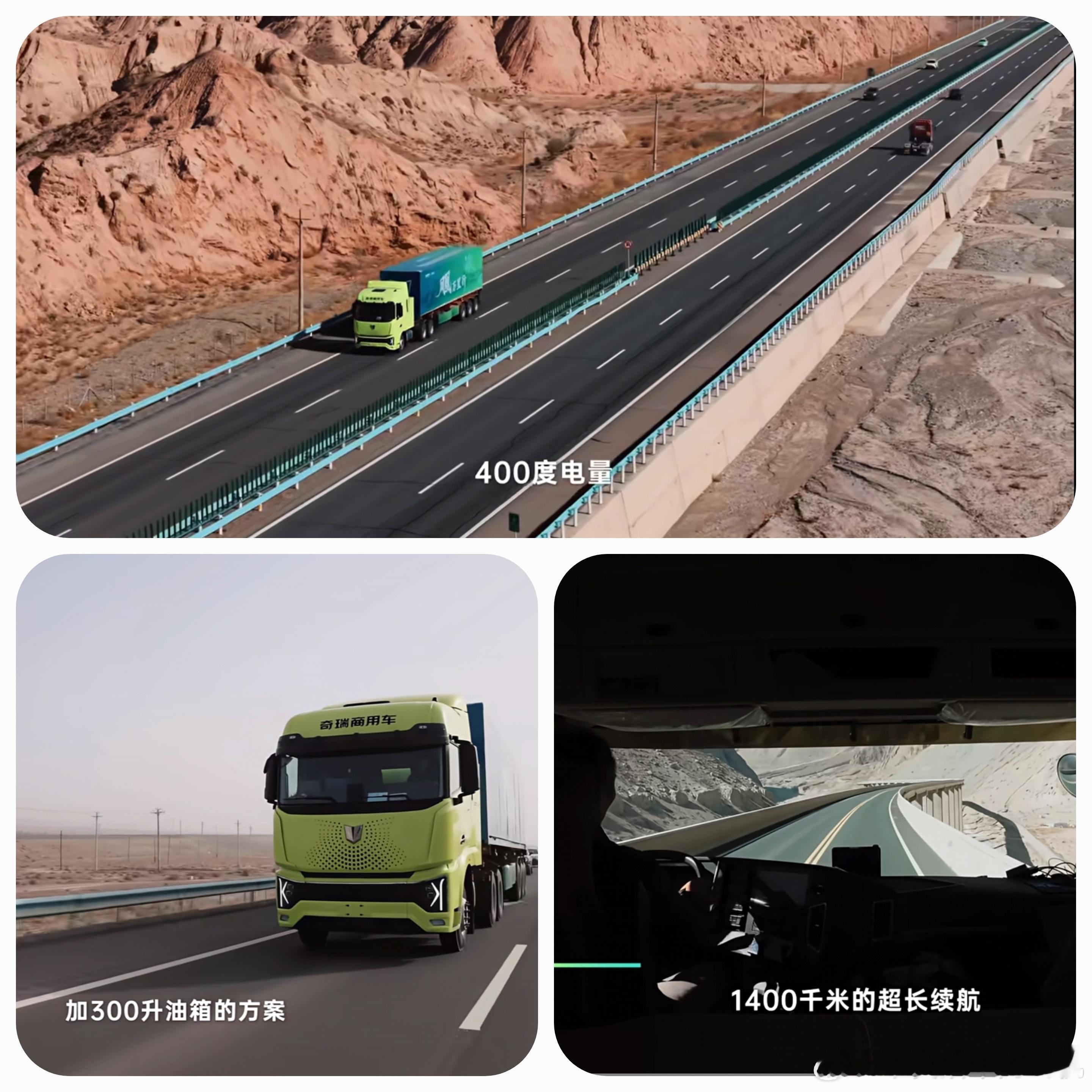 400度电池的增程卡车!奇瑞商用车(联合重卡)做了有一款400度电池,300升油箱的牵引车,续航1400公里。如果按油价6块钱一升,充电1块钱一度计算的话,这个增程重卡每公里能耗成本应该是在1.57元。纯柴油的牵引车每公里成本大概是1.6-1.7元,跑长途的话增程优势不大。如果是部分中短途工况,能充到便宜的电,增程还是有优势的。当纯电车用,发动机就是应急的充电宝。