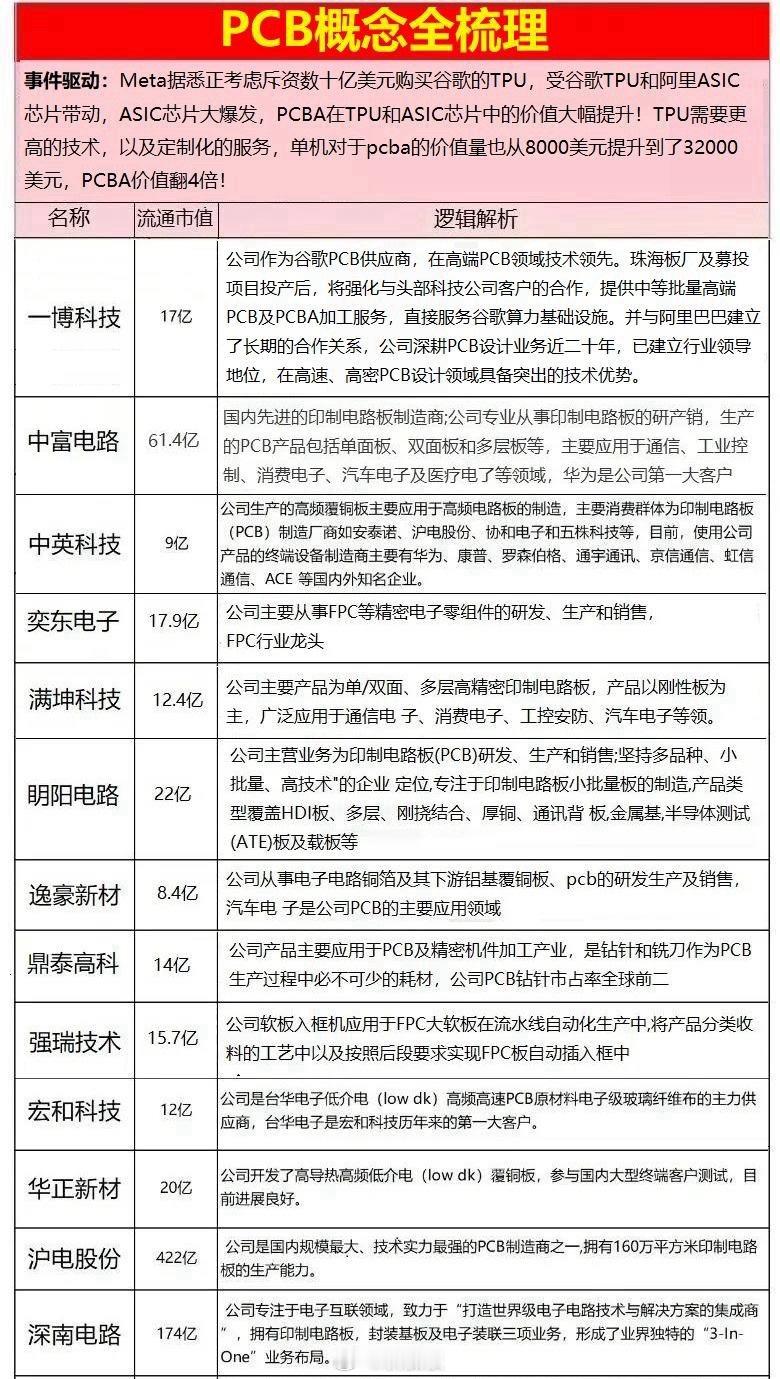周四舆情热度(附 图解各热点题材概念)①芯片/光刻机-根据Trendforce报告,全球大型云端服务业者(CSP)正加速自研AI ASIC,资本支出将大幅提高。知情人士:2027年底完成国产替代,芯上微装首台350nm步进光刻机正式发运 国产高端光刻设备领域再次实现突破;(芯片半导体/诚迈科技、一博科技、新金路、壹石通、沃格光电、寒武纪等;光刻机/上海新阳、凯美特气、海立股份、电气风电、格林达 、张江高科等)②AI应用-谷歌新版Nano Banana上线,其超预期的输出表现令市场对AI应用的关注度进一步强化;(一博科技、拓斯达、科泰电源、诚迈科技、中威电子 、德科立、光库科技等;)③机器人-发改委:将健全具身智能准入退出机制, 营造公平竞争的市场环境,加速具身智能体在真实场景中落地应用;(拓斯达、一博科技、中威电子 、斯菱股份、诚迈科技、新美星、长盈精密等)④消费电子-近日,大厂接连推出消费电子新品,阿里发布夸克AI眼镜,华为推出Mate 80及Mate X7等多款新品;(福日电子、上海新阳、科森科技、惠威科技、道明光学、昀家科技等)⑤商业航天-国家航天局印发《国家航天局推进商业航天高质量安全发展行动计划(2025—2027年)》;(万通发展、一博科技、中天火箭、天宜新材、通宇通讯、电科芯片等)⑤两岸融合-中央和地方密集发布多项政策文件,提出要探索海峡两岸融合发展新路,建设两岸融合发展示范区。(平谭发展、安妮股份、海欣食品、睿能科技、福日电子、海峡创新等)⑥PCB-受谷歌TPU和阿里ASIC芯片带动,PCBA在TPU和ASIC芯片中的价值大幅提升!TPU需要更高的技术,以及定制化的服务,单机对于PCBa的价值量也从8000美元提升到了32000美元,PCBA价值翻4倍!(一博科技、壹石通、雪祺电气、金安国纪、云汉芯城等)
