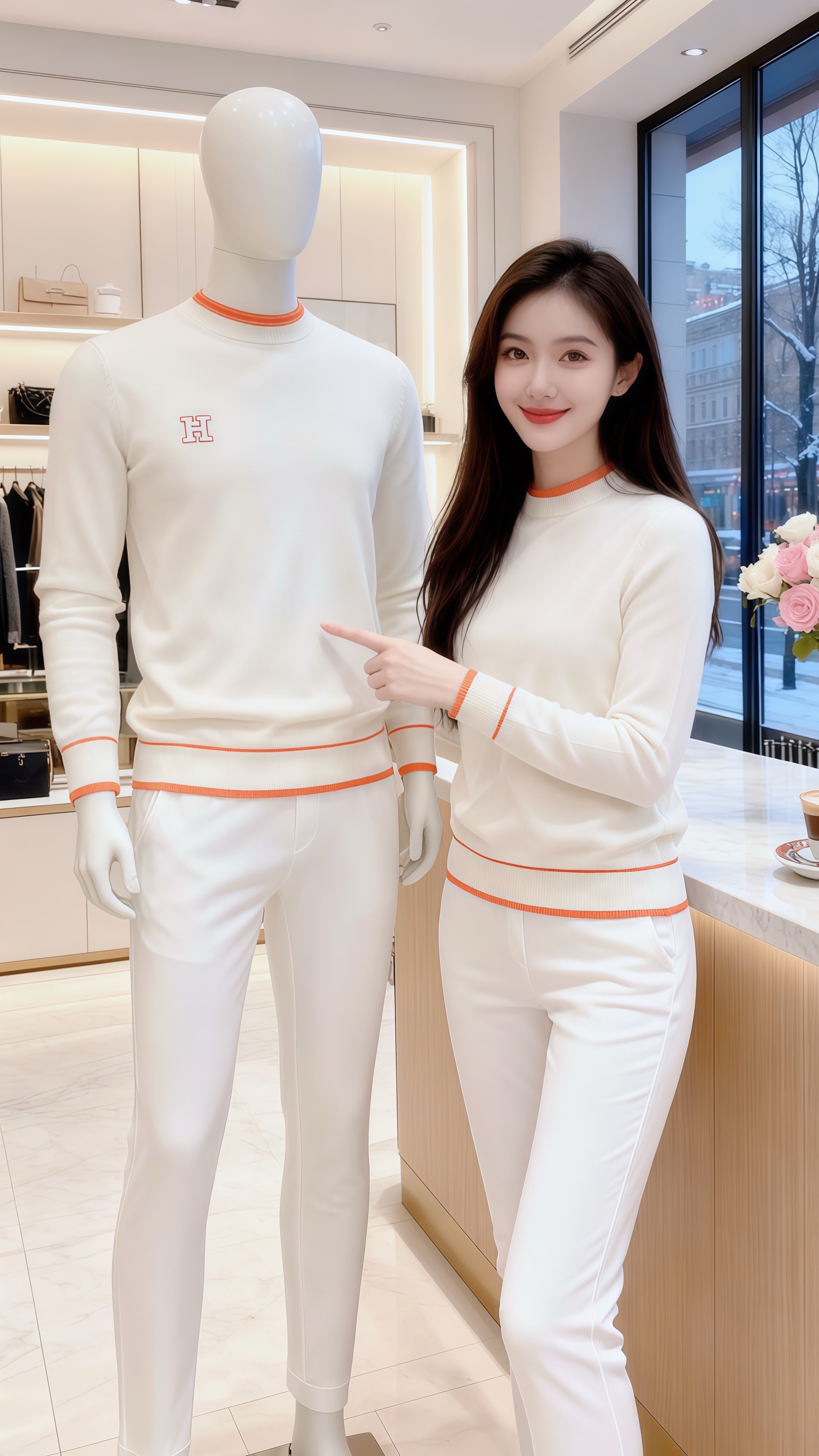 《雪窗里的橘色线》《雪窗里的橘色线》落雪漫过街景时,林薇指尖碰着拿铁杯沿,身上米白毛衣的橘色镶边,像把冬阳揉进了针脚。陈则推门进来,围巾沾着雪星,目光先落在她领口那圈暖橘:“上周路过橱窗,一眼就认这衣料——软得像你总捧在手里的热可可。”他指尖擦过她腕间的表,衣料柔感蹭过指腹,“连袖口的线,都裹着温温的甜。”林薇笑弯眼,咖啡香裹着窗外雪意漫开:“摸起来比看起来更软,刚好接住今天的冬。”