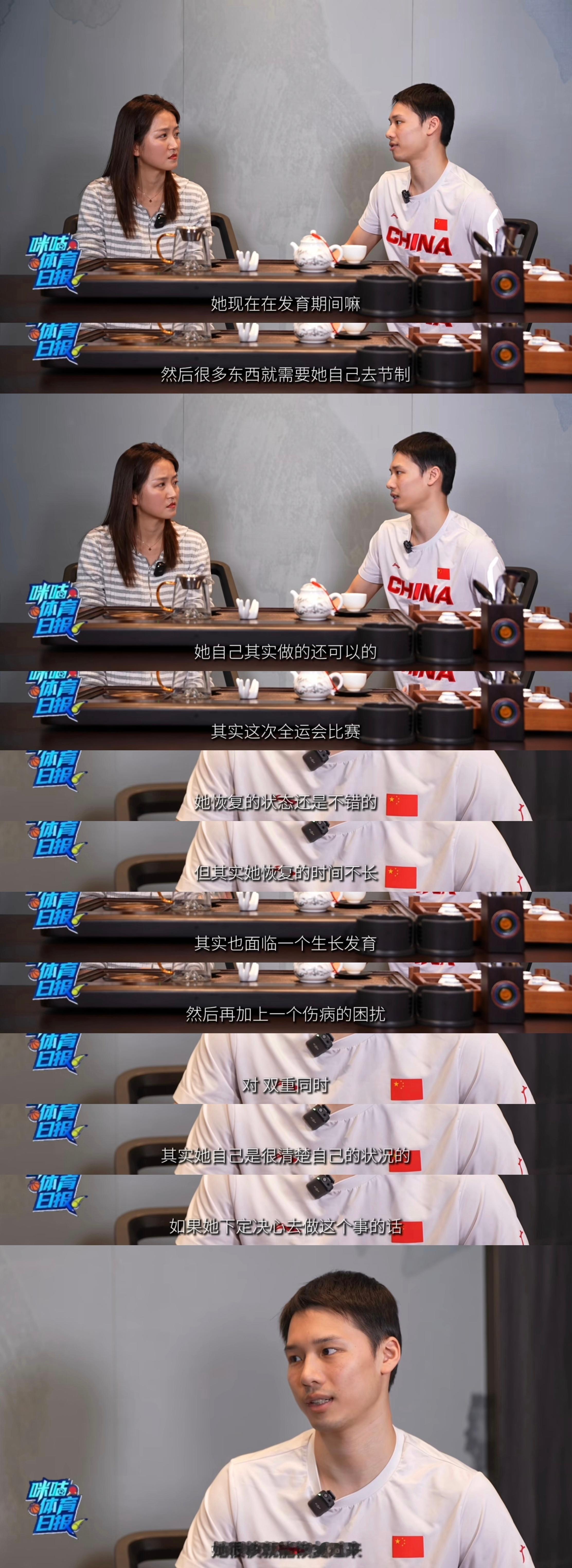 水队的人真的很少像陈艾森把小红这种高处不胜寒的处境直接说出来,红的压力完全是独一份的,森哥很诚恳地强调小红是现象级运动员,而他们不是,对国民影响他们达不到小红这种高度,他们没办法用已有的经验去帮助小红。妹真的不容易,她的处境、感受,身边没有人能感受,她得靠自己去调节,尤其妹妹年纪还那么小,从14岁就开始承受这些,这种压力不是我们能想象的。现在妹妹二次发育+伤病困扰,还叠加这种压力,特别不容易,不过森哥对妹还是非常有信心,觉得妹恢复问题不大,小红对自己的状况非常清楚,也是个很有主动性的人,红有自己的节奏。