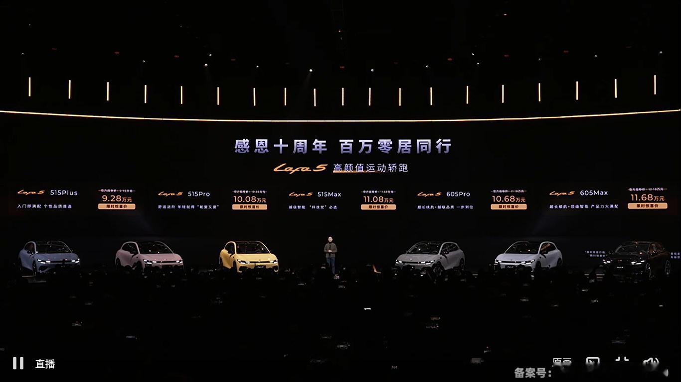 零跑Lafa5开启轿跑10万级时代零跑Lafa5正式上市,限时惊喜价9.28万元⚡🔋续航有515km及605km两个版本,建议直接上顶配,限时价11.68万元。配置直接拉满,续航也长一些。另外,其实大家选这种灵动小车的时候,颜值还是非常重要。这车整体的外观,还是很耐看时尚的。然后车身颜色上面,这次也给到6个选择。个人觉得摩根粉应该会非常受欢迎⚡还有就是广告色~电掣黄,整体非常靓,很有年轻的活力感!那么问题来了,这个价格,你选谁?