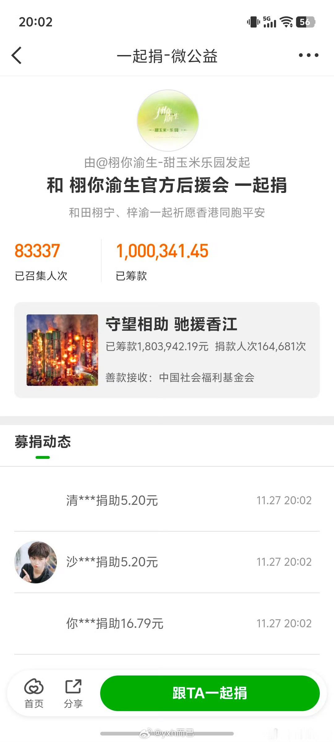栩你渝生后援会捐款还是cpf有钱,幸亏这两没有合体活动,要不然cpf比博君一肖还可怕