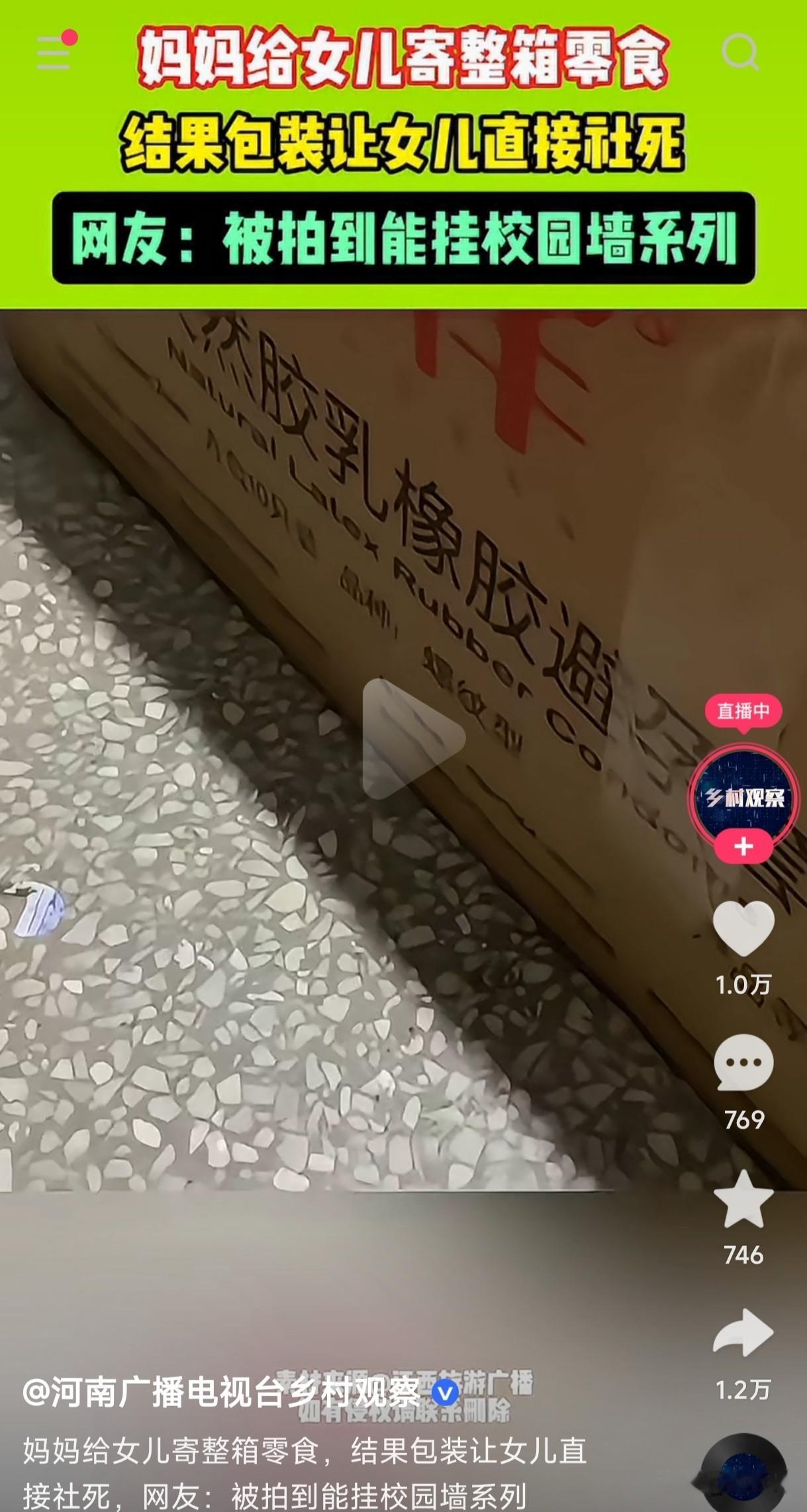 妈妈给女儿寄整箱零食,结果包装箱直接让女儿社死,校友火速跑来围观,拿什么箱子装不好,非整一个装过避孕套的箱子,结果打开箱子后校友的好奇心逐渐消失了。 妈妈的爱是无可替代的,但这种让女儿当场社死的妈妈还真不多见,不知道是这位妈妈不认识字还是她对装零食的箱子根本就不在乎,认为只要有箱子装就可以了,谁知道女儿收到快递后校友都用异样的眼光看她,她也觉得尴尬极了,当她打开箱子校友看到里面的东西时,瞬间也觉得没那么搞笑了,原来里面装的是吃的。