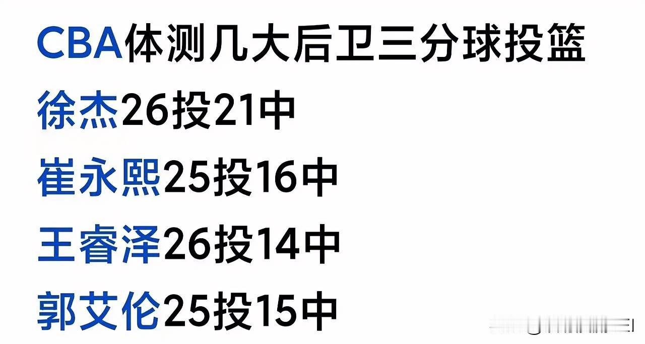 徐杰体测三分球投篮能力,26投21中,命中率81%,放眼整个联盟,没有几个人有这样的命中率了,上赛季就可以看出徐杰三分能力提高了,经常投出比三分线还远两米的三分,且每个位置投都很稳定,再这样下去,徐杰进攻无人能防了,新赛季,徐杰成为广东队队长,成为球队最核心人物,估计新赛季都是以徐杰为头号分手了!大家觉得呢!