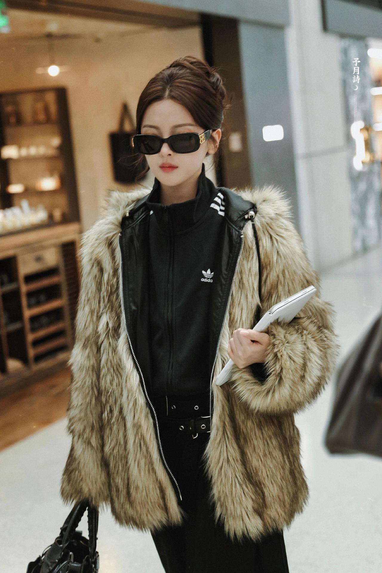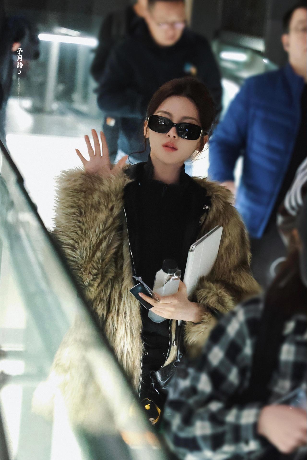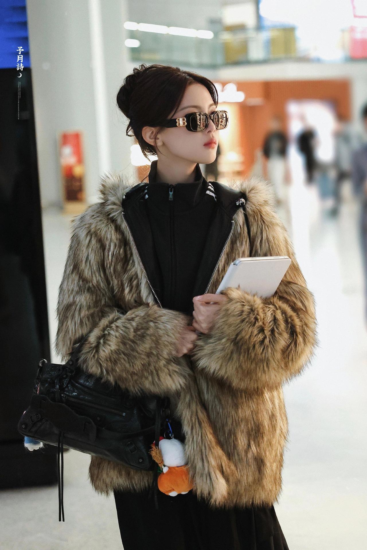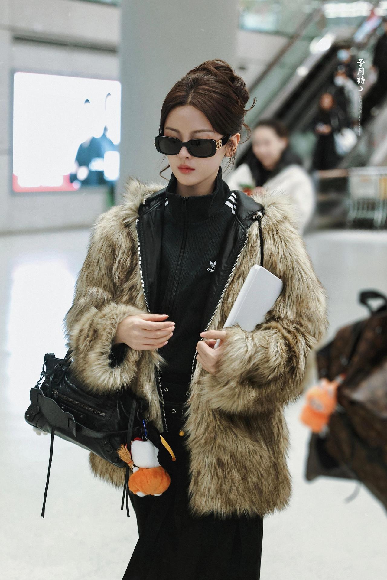 杨超越这身机场穿搭太戳“气场女王感”了!毛绒外套叠黑色运动套装,混搭出松弛又显贵的氛围;配Balenciaga包包+袜套鞋,细节里全是潮酷质感,直接把机场走成秀场~杨超越