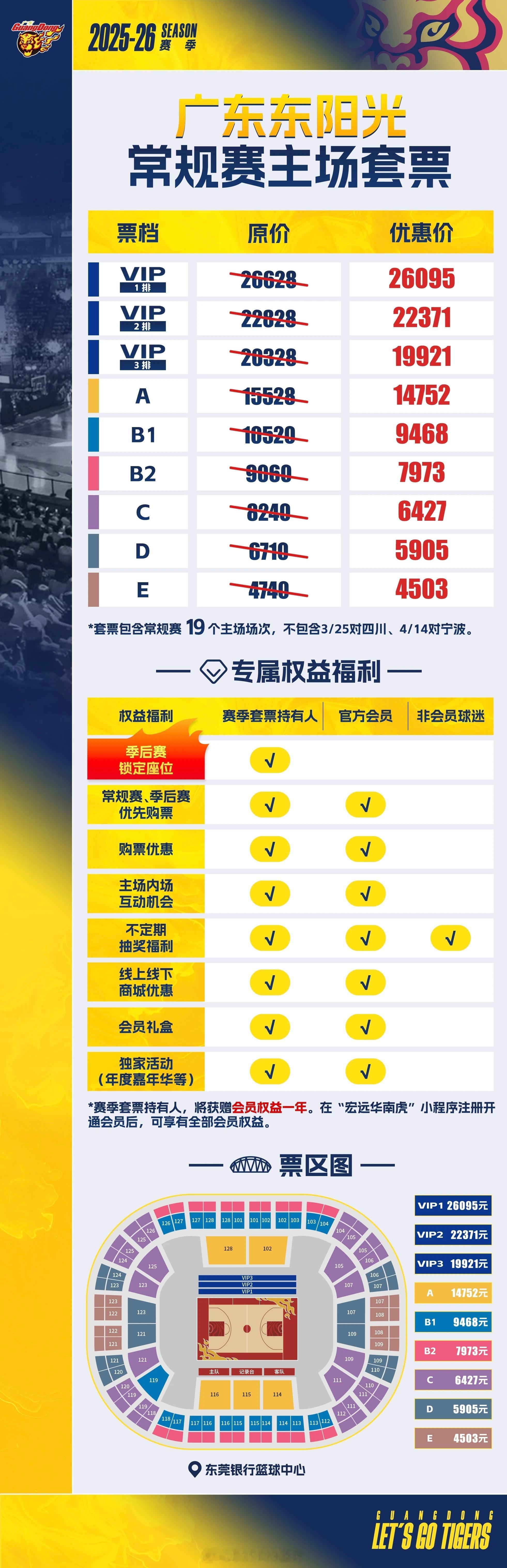 新赛季CBA联赛广东宏远男篮(广东东阳光队)主场套票明天中午开售!广东宏远