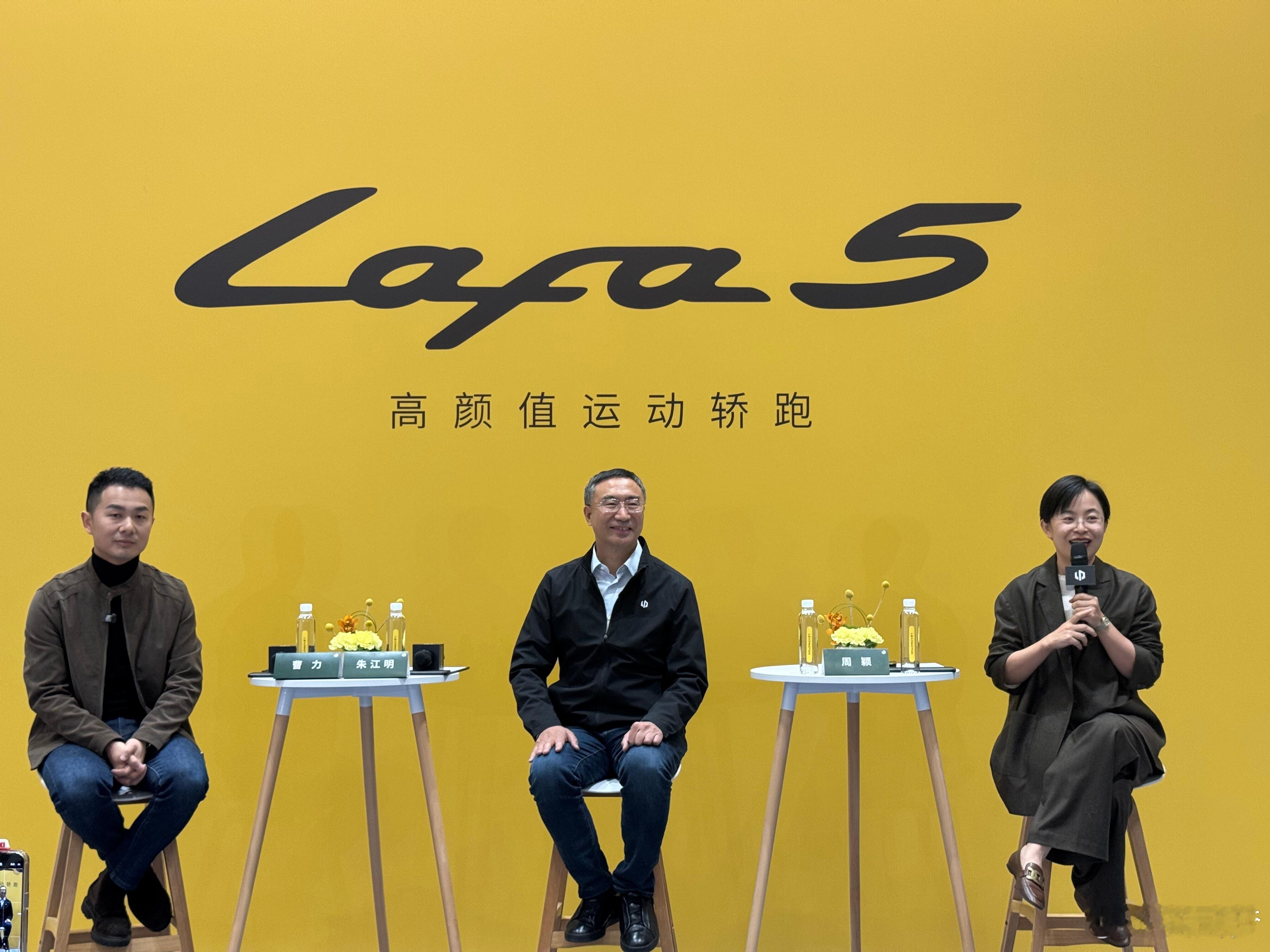 零跑Lafa5上市后的访谈,零跑朱江明也在,而且明显感觉到他很开心,情绪很高涨,说了很多不能讲的,我分享一些可以说的给大家:刚才看到一张图,清晰列出来A/B/C/D现有的车型,而零跑Lafa5(还有T03)是作为品牌的个性化小车单独列出来的,这个区分挺有意思的。一方面,Lafa5其实也是零跑的一个执念,朱江明提到当时做S01其实在宣传、定价、产品规划上都有很多的失误,后面做了很多复盘,这些经验也是决定了现在零跑很多做法的形成,所以今年零跑十周年终于又上市了一台足够个性的运动轿跑小车,算是补上了当年S01的一个遗憾吧。另一方面,从行业上来说,Lafa5也是一种探索。一个规模足够大的汽车集团是应该要有足够丰富的产品去满足不同用户的需求,零跑在上升发展的过程中要保持以上产品序列的铺开,但也没忘记推出了一些个性化产品作为连接。从今晚的订单量来看,这样的做法正确无疑。海外方面这一块今天聊得比较少,但是今晚也来了很多国外的媒体和用户,所以这款车我敢肯定未来是会有出海计划的,先在国内市场打基础,后面再向海外市场试点推进。一个是欧洲市场本身就有轿跑消费传统,Stellantis集团合作给到了底盘调校技术,也给到了更加丰富的渠道。而且官方表示慕尼黑设计工作室也在筹备中了,未来大家应该能够看到更加多样化的一些设计。最后是关于明年百万销量的一个判断,明年A、B、C、D四个系列齐发力,加上明年规划的四款新车,零跑产品端的布局是到位的,而且从零跑的观点看,整个汽车销量的总盘子是不会变的,目前可能因为政策的变化会影响到大家的消费预期,但从整个新能源汽车发展的时间单位上看,市占率还会在今年的基础上再稳步提 5%到 10%的范围,这是一个大的基本盘。完。零跑Lafa5开启轿跑10万级时代零跑Lafa5大v聊车