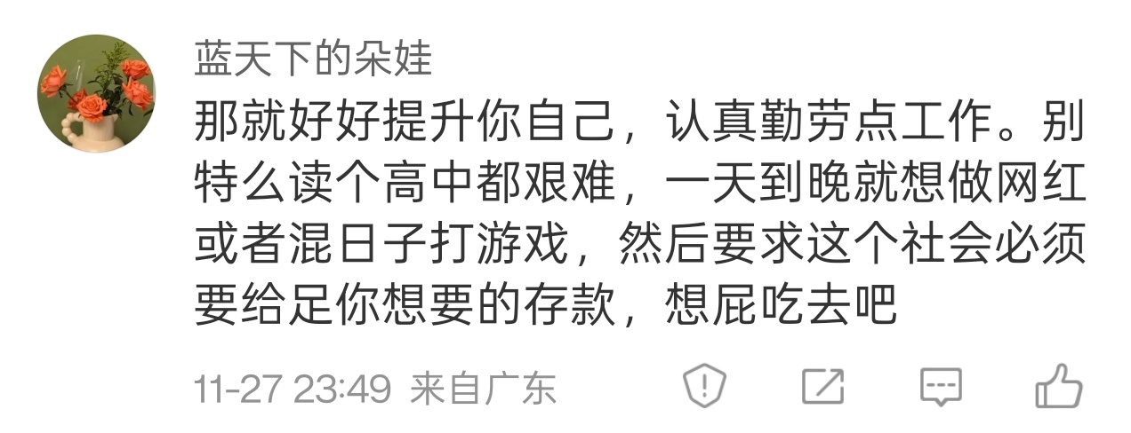 这种人到底是男是女啊?性别写着女,爹味却那么足?她说的点,跟我没半点关系啊。而且我不是顺着她的话说,我反思么?这怎么还破防攻击人了?