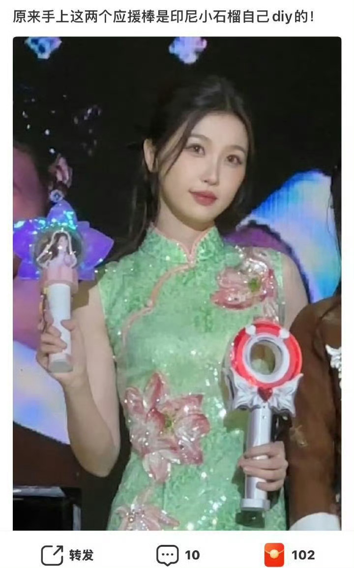 虞书欣印尼合照手里拿的应援棒是粉丝自己diy的不知道下家粉在嘲什么…..可能这辈子都没收到过礼物是这样的