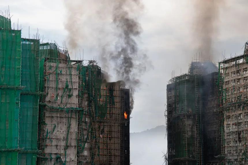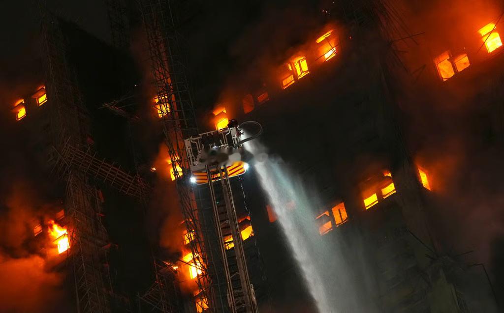 香港大火看到最绝望的一张照片 漫天大火,图2图3图4的水柱,像是杯水车薪热点观点 ,驻香港部队将听令而行 ,香港起火大楼内发现生还者