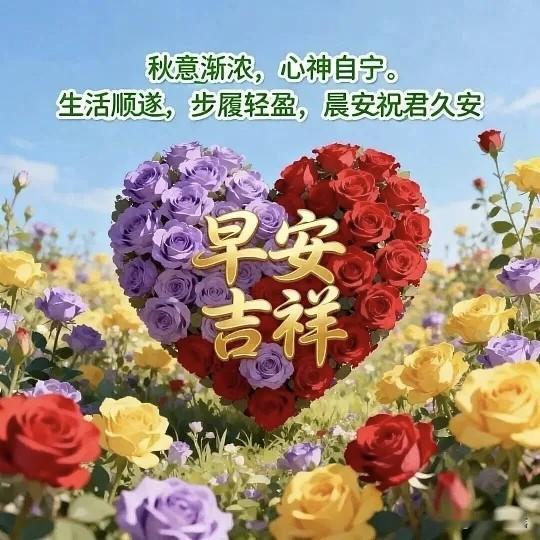 送一份祝福,平平安安,送一份心意,美美满满,送一份快乐,健健康康!日子安稳,幸福吉祥!永久的财富是朋友,一生的金牌是健康!大家早上好! 人字有两笔,一撇写前半生,一捺写后半生,前半生写执着,后半生写放下,生活一半烟火,一半清欢,人生一半清醒,一半释然!