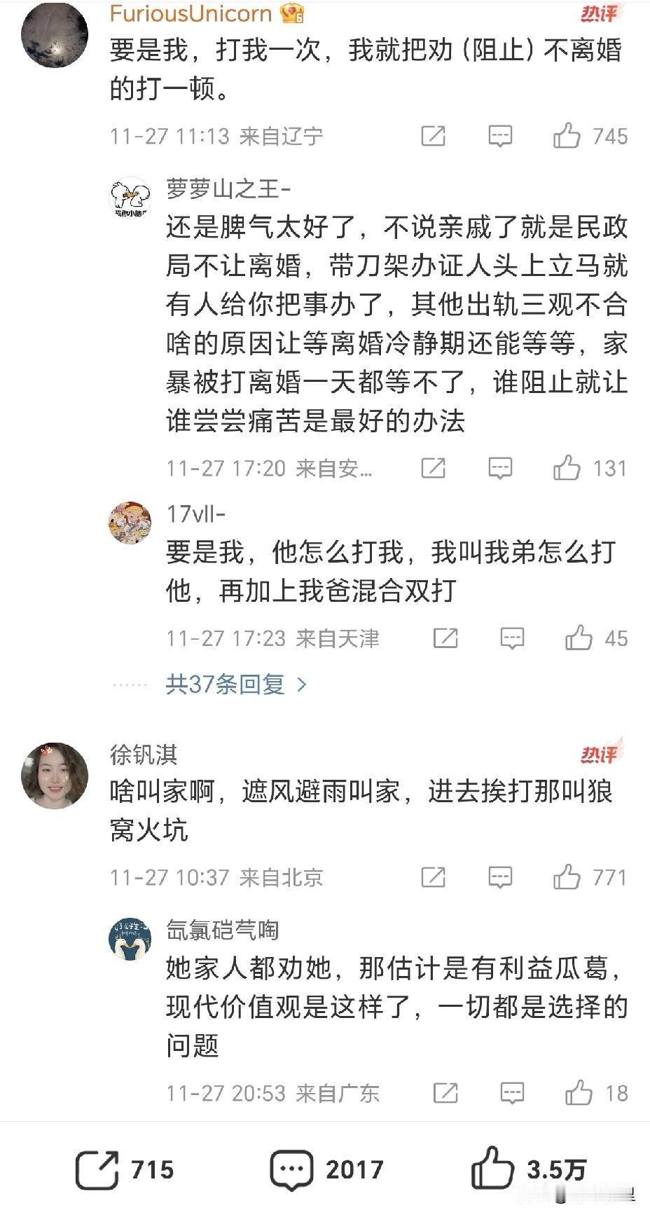 真是气得手抖。一位刚剖腹产的妈妈,在月子期间被丈夫反复暴打。打一次写一次保证书,前前后后写了十几次。最后一次施暴直接导致女子的腹部伤口崩开,真是没有人性,他怎么下得去手啊? 最让人寒心的是娘家人,为了面子不顾女儿死活,一直劝着女儿原谅对方。刚生育完,身体和精神都是最脆弱的时候。本来就容易出现产后抑郁,又发生这样的事情,不敢想象女子的心里有多痛。 希望女子要考虑清楚,勇敢的走出来。家暴只有零次和无数次。当原谅成为纵容,只会让对方变本加厉。家暴 婚姻 情感 家庭
