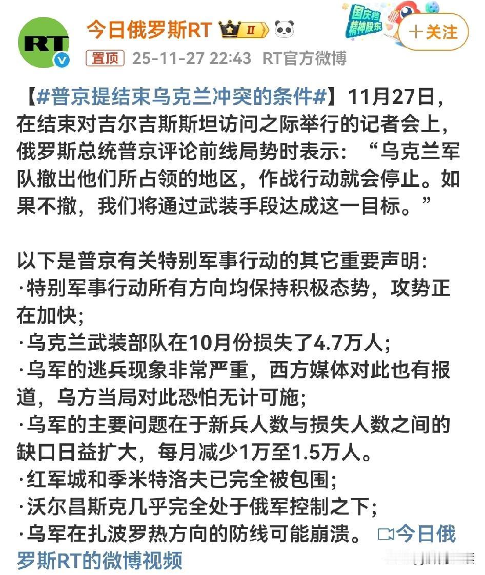 俄罗斯特别军事行动的停火条件引发诸多关注。据路透社报道,普京提出的条件有不少要点。一是要求乌军从顿巴斯地区全部撤出,作为交换,俄军可冻结扎波罗热和赫尔松两地区目前的交战接触线,还会移交控制的乌哈尔科夫等地小部分领土,相比2024年6月的要求有让步。二是乌克兰不能加入北约,还需北约做出不再东扩的法律承诺,限制乌军规模。三是禁止西方军队以维和部队形式进驻乌克兰。不过乌总统泽连斯基表示,单纯撤军关乎国家生存,加入北约也不应由俄决定,双方分歧仍在。乌克兰会有什么条件呢?俄美乌停火谈判