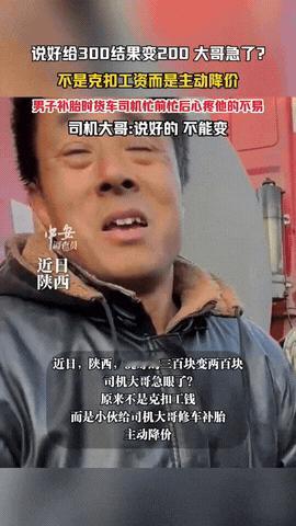 格局打开了! 陕西,一货车司机发现车胎爆了,联系修车的师傅,谈好价钱是300元。没想到车修好后,师傅只收200,这做生意的都想坐地起价,可这师傅坐地降价,还真是第一次听说,货车司机当时就懵了。 原来,修车师傅在修车时,货车司机也帮着打下手,递工具,紧螺丝,两个齐心协力,轮胎补好后,货车司机问多少钱,修车师傅说,你也不容易,都是辛苦钱,200吧。 可货车司机急了,那怎么行,说好的300就300,不能变。说完就拿手机转钱,接着还说:“跑货车是挺累,一码归一码,也不差这一百,你大老远跑来,这钱是你该得的,你必须收下。”最后,师傅还是收下了。 两人的格局都打开了,司机要给够300是本分,不占小便宜,理解修车师傅,一个电话,不管车坏在哪,都及时赶到。修车师傅少收是情分,是体贴开车的不容易,没日没夜地跑车,挣的是血汗钱,这是双向奔赴的温暖,是满满的正能。 这两人都是实在人,没有斤斤计较的算计,只有相互理解的坦诚,和骨子里藏着的善良,希望这样的善举多传承下去,让世界变得更加和谐美好。 大家对此事怎么看?