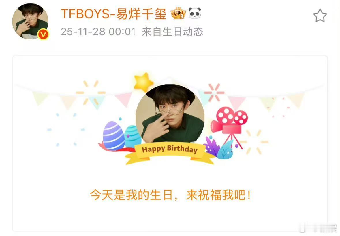 易烊千玺25岁了 易烊千玺25岁生日快乐🎂从青涩舞台少年到金鸡最年轻影帝,每一步都在角色里沉淀,用实力打破标签。愿新岁仍能自在逐光,在舞台与光影间绽放更多可能,前路坦荡,万事顺意,未来可期!