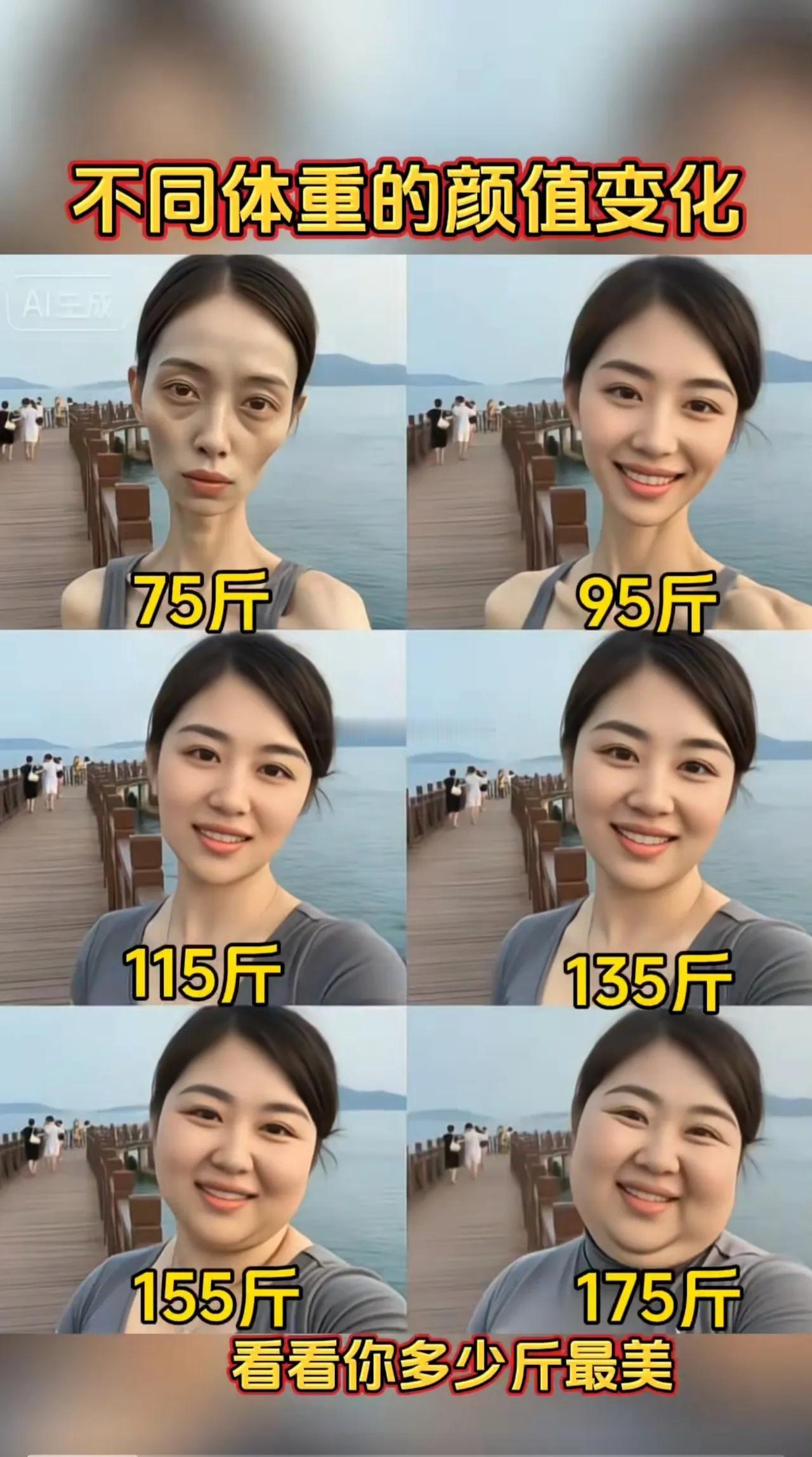 各种不同体重情况下的颜值变化,我感觉115和135是最好的。