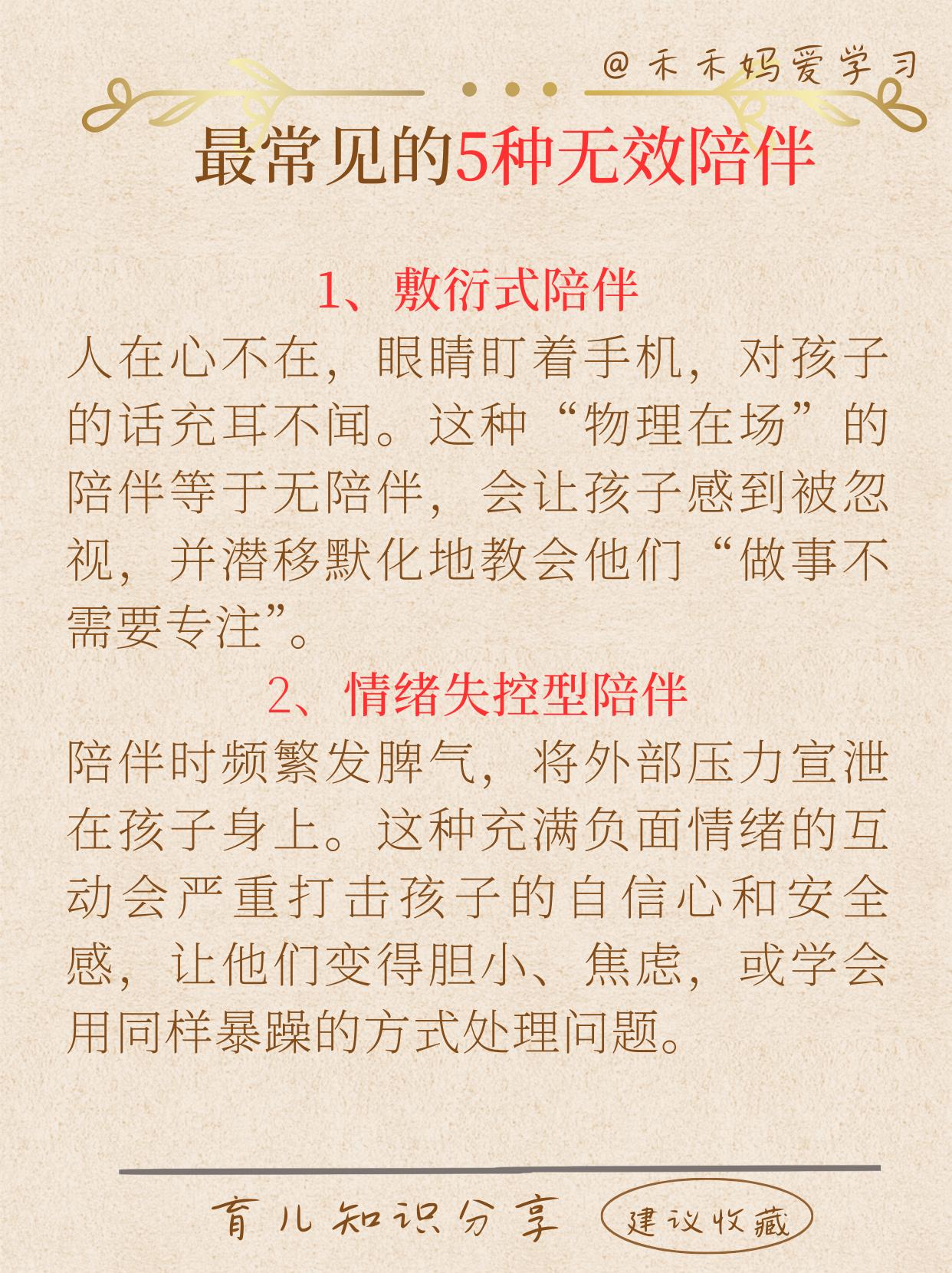 著名心理学家阿尔弗雷德·阿德勒曾说:"幸福的人用童年治愈一生,不幸的人用一生治愈童年。" 父母给孩子童年时期的陪伴质量,决定孩子人生的底色,是孩子终身心理健康的基石。 优秀的孩子不是简单的陪出来的,分享5种普通父母最常犯的5种无效错误陪伴,以及被证实最有效的5种陪伴方式。 希望每一位父母都能认真看一看,为孩子的未来奠定一个良好的基础。