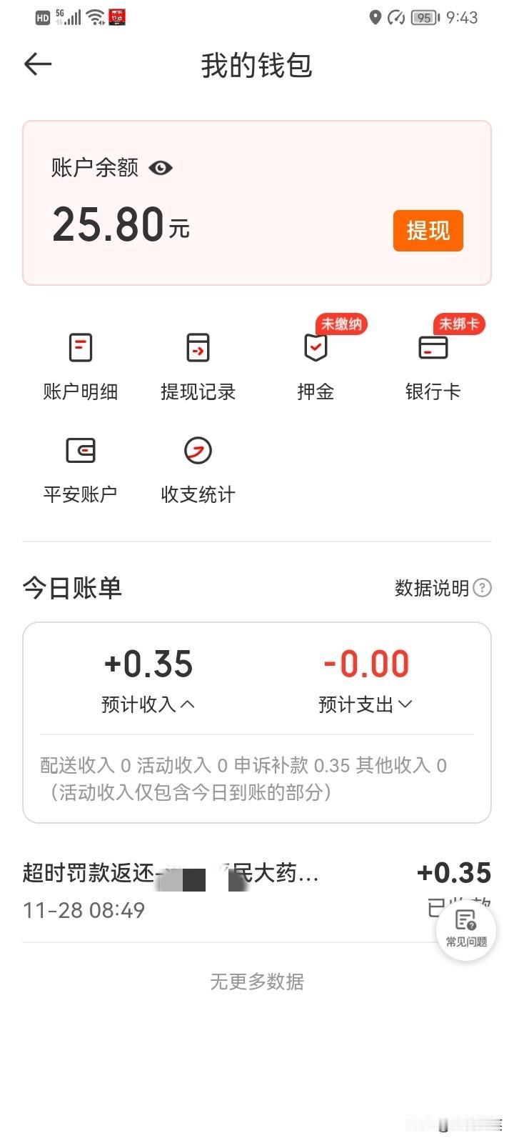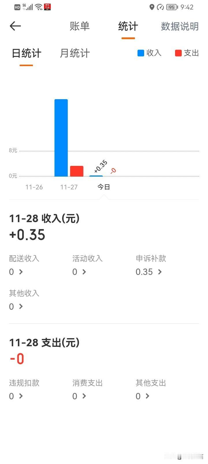 昨天是送外卖的第二天,送了4单,新手活动给了10元,总共挣了24.4元,第一天送了2单,收入7.4元。2天保险减6元,总共挣了25.8元[我想静静]。 昨天送外卖很不顺利,有一单超时了4分钟,扣了0.35元,今天用了免责卡,又退给我了。 昨天还有一单送错楼层了,顾客的位置是1101,我给送到1楼去了,实际上是11楼,晚上7点半送到的,顾客晚上10点多给我打电话,我又从家里出来把1楼的外卖给顾客送到11楼了。 昨天大概跑了2个小时吧!除去活动的10元收入,挣了14.4元,平均一小时7块钱。 做什么都不容易啊!送外卖也没自己想象的那么简单,不过万事开头难,我相信,坚持就是胜利,加油![奋斗] 兼职跑外卖收入 送外卖