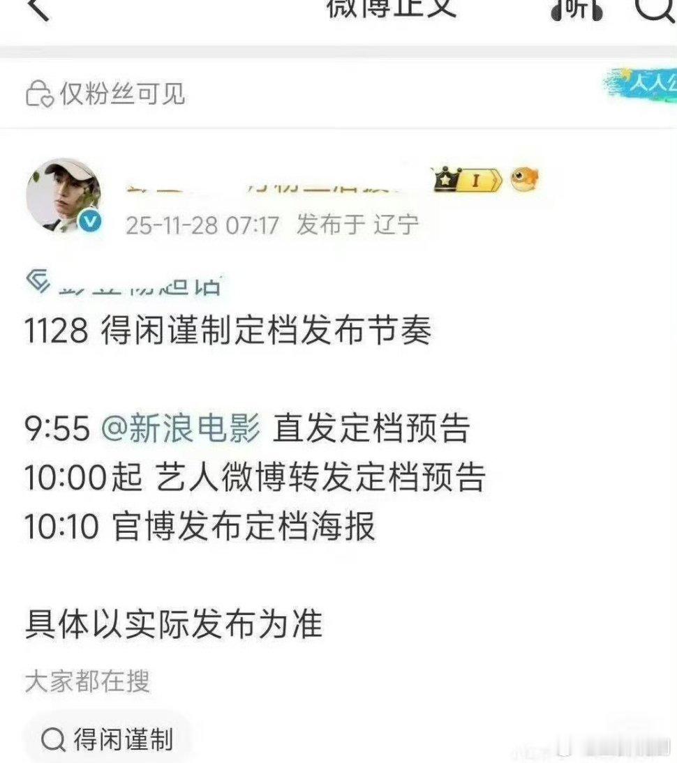 【二胖发布】得闲谨制定档 正午阳光出品,肖战主演的电影《得闲谨制》马上官宣定档!影片全演员阵容:肖战,彭昱畅,周依然,尹正,甘昀宸,阿如那,任程伟,江奇霖,祖峰,廖凡,刘昊然