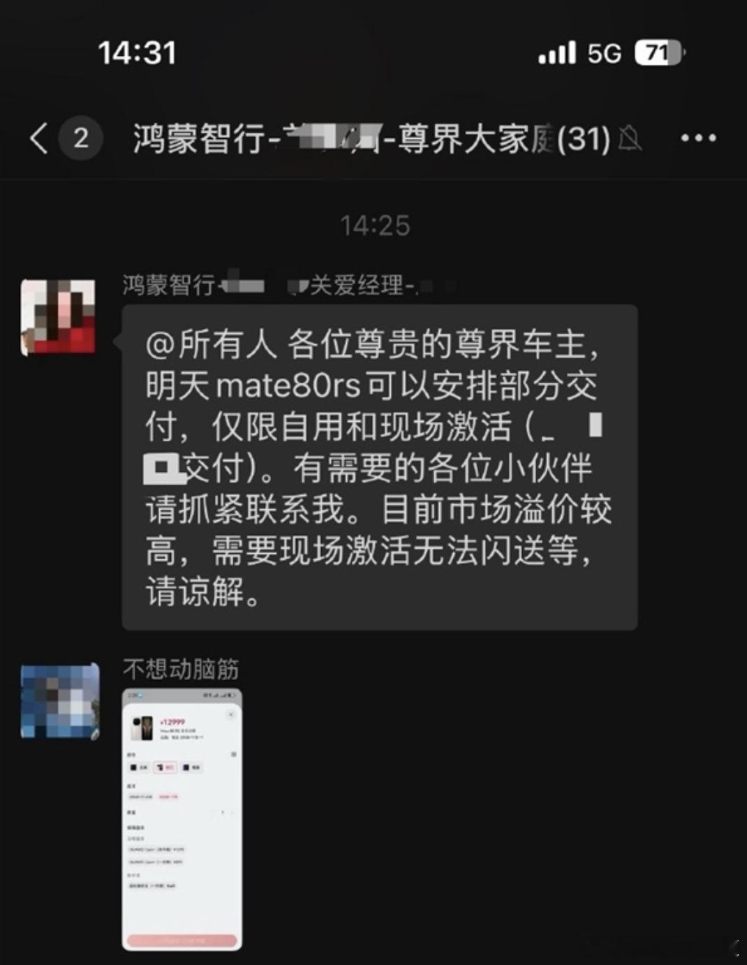 曝尊界车主可买首批买Mate80RS有博主爆料称,尊界S800的车主福利又增加了,给他交付尊界的门店表示,可以给尊界车主提供华为手机的优先购买权限,比如预定Mate 80 RS、Mate X7等旗舰机型(锁定首批货源)。不过这位博主也表示,这些机型市场溢价较高,需要现场激活无法闪送等。