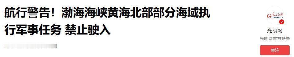连发2道封海令,愤怒升级,北海舰队终于上场,高市紧急回应! 初冬的渤海海峡,一场持续十四天的军事任务正在展开。自11月23日起,北海舰队在黄海北部划定禁航区,展开为期半个月的实战化行动。 与往常不同的是,这次行动被明确界定为“军事任务”而非一般性演习,这一措辞变化引发各方关注。 麻烦各位读者点一下右上角的“关注”,留下您的精彩评论与大家一同探讨,感谢您的强烈支持! 此次行动具有三个显著特征:一是持续时间长,考验部队持续作战能力;二是区域敏感,位于环渤海经济圈出海口;三是实战背景明确,不设预定脚本。 这种高强度、全要素的军事部署,展现了解放军维护核心水域安全的决心与能力。 就在中国海军展开行动的同时,日本政坛传来耐人寻味的声音。高市早苗在近期国际场合一改往日的强硬姿态,转而表示愿意开展对话。 在呼吁对话的同时,她并未收回此前有关台湾问题的错误言论,也未改变其强硬立场。 这种言行不一的做法引发多方质疑。从其在G20峰会期间的表现来看,高市早苗似乎更注重营造舆论氛围,而非真正寻求沟通。 日方此前曾派出一名中层官员来华沟通,这种缺乏实质诚意的举动自然难以取得预期效果。 日本政客的这种双重策略背后,反映的是其国内政治考量。一方面需要通过强硬表态争取右翼支持,另一方面又希望在国际场合维持理性形象。 这种摇摆不定的姿态,不仅无助于改善中日关系,还可能进一步加剧地区紧张局势。 中国在黄渤海区域的军事部署持续引发关注。军事学者指出,选择在连接渤海与黄海的关键水道进行长时间军事任务,具有重要战略意义。 这片水域既是北方沿海经济带的重要通道,也是保卫京畿地区的海上门户。在此开展实战化训练,充分彰显了中国维护国家主权和领土完整的坚定意志。 此次军事任务的时间跨度达14天,这在现代海军行动中较为罕见。长时间的持续部署不仅检验装备性能,更考验人员的作战素养和指挥体系的运转效能。 这种全方位的实战检验,体现了中国海军作战能力的显著提升。 在国际局势复杂多变的背景下,中国始终坚持通过实际行动维护地区和平稳定。此次军事任务既是对潜在安全风险的应对,也是对外部干涉势力的明确警示。 中国在核心利益问题上的立场一贯明确,任何企图挑战中国底线的行为都不会得逞。 东亚地区安全格局正经历深刻调整。各国都在探索新的相处之道。中国始终主张通过对话协商解决分歧,但同时也会坚决捍卫国家主权和安全利益。 这种既坚持原则又保持开放的态度,为地区和平稳定提供了重要保障。 您如何看待近期黄渤海军事任务与日本政客表态之间的关联?地区安全局势将如何发展? 欢迎在评论区分享您的观点与见解。