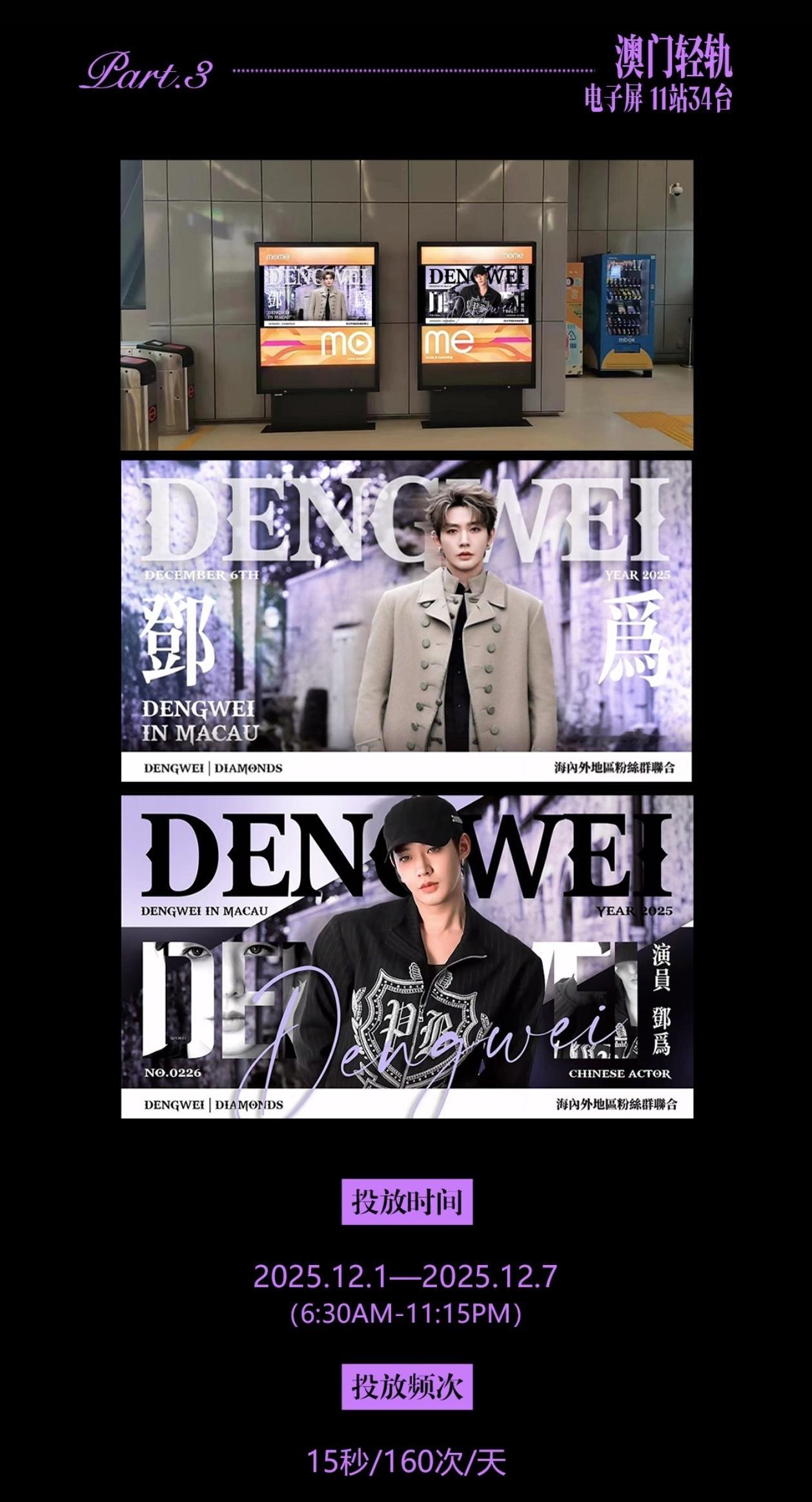 给邓为最好的排面!!!钻姐们的应援永远都是那么有实力!这一次爱奇艺尖叫之夜,海内外29个地区钻姐在澳门联合应援,再次把双向奔赴的爱具象化!钻姐们每一次出手都非常有排面👏👏1.澳门塔大屏2.澳门轻轨车站11站34屏3.拱北口岸空IF4&IF6屏及众多物料,已经狠狠期待12月6日,邓为在爱奇艺尖叫之夜的造型了2025爱奇艺尖叫之夜 邓为风月不相关